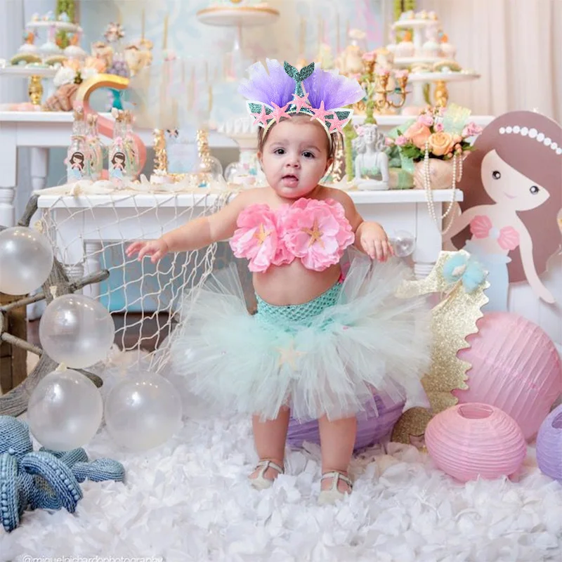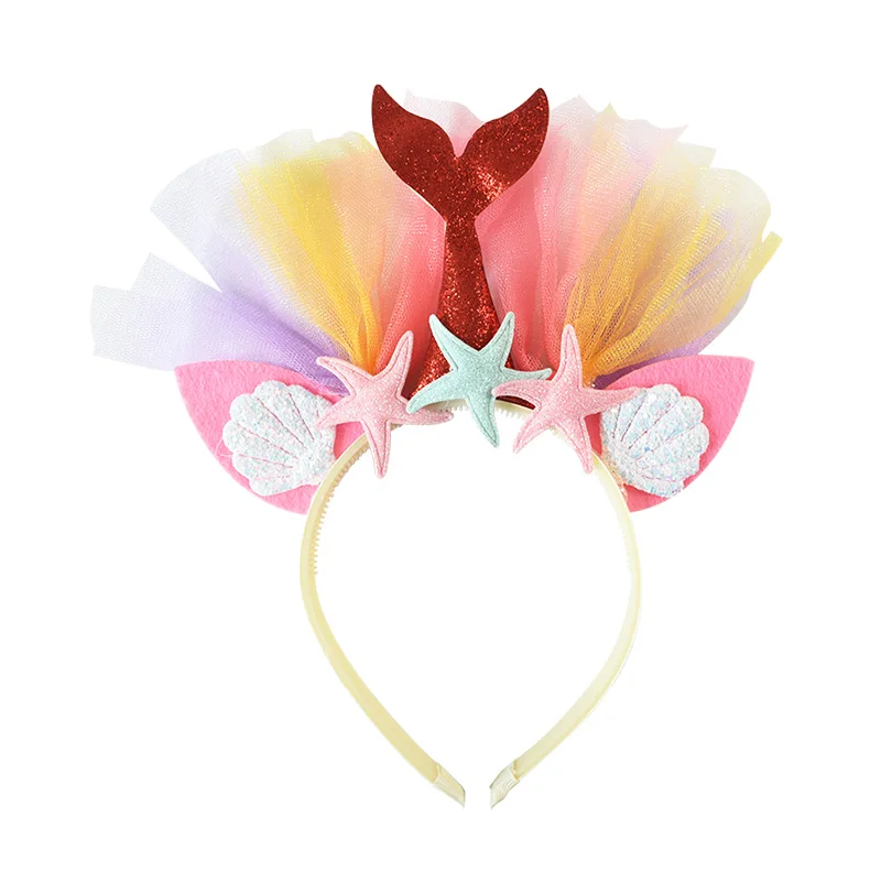 Ободок для волос с блестками в форме морских звезд и ракушек, украшение для девочек повязка на голову для Русалочки, тематическая вечеринка на день рождения