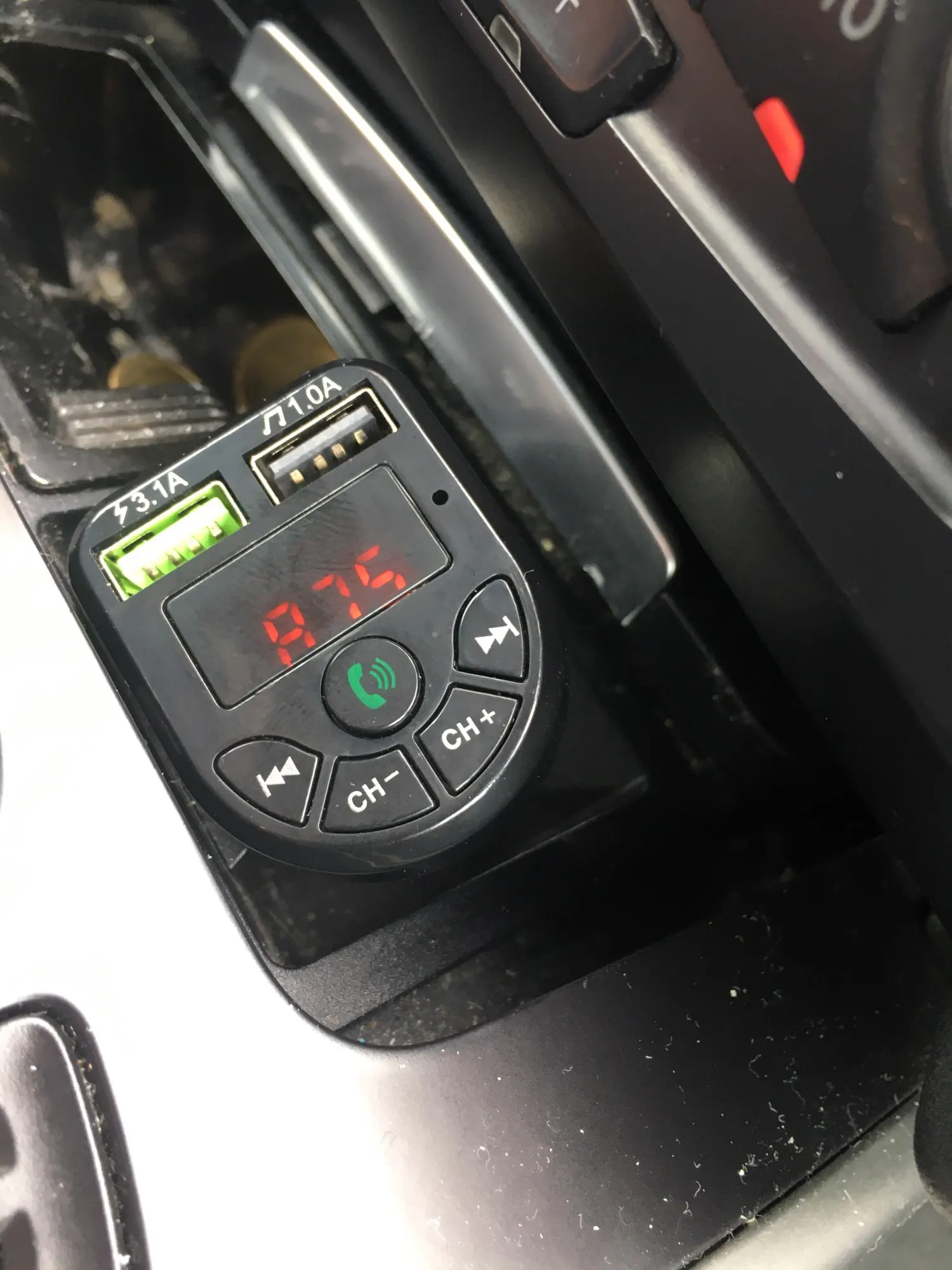 Это лучшая моя покупка на али за все время, по соотношению цена/радость. За 200р я чуть не сделал сальто назад от радости ведь в машине появилась музыка! Вместо штатной не очень хорошей CD магнитоллы. Все регулировки на руле остались работать. Звучит отлично! Громко, без помех и писков.Радио ловит чище чем родная магнитола. Флэшки читает, воспроизводит трэки с того же места где выключил., телефон заряжает. С телефоном конектится без проблем. Есть громкая связь , при звонке - читает номер на китайском, ничего не понятно , но забавно. Минус один плохо слышно в режиме громкая связь. Но это потому что он далеко от головы водителя. Если говорить в него то слышно. Супер устройство.! Рекомендую. Кто пишет что звук гавно не слушайте их они не понимают что они купили и за сколько и как звучат обычные трансмиттеры из магазина