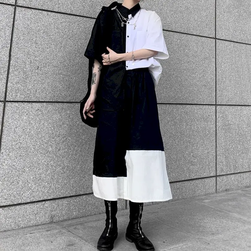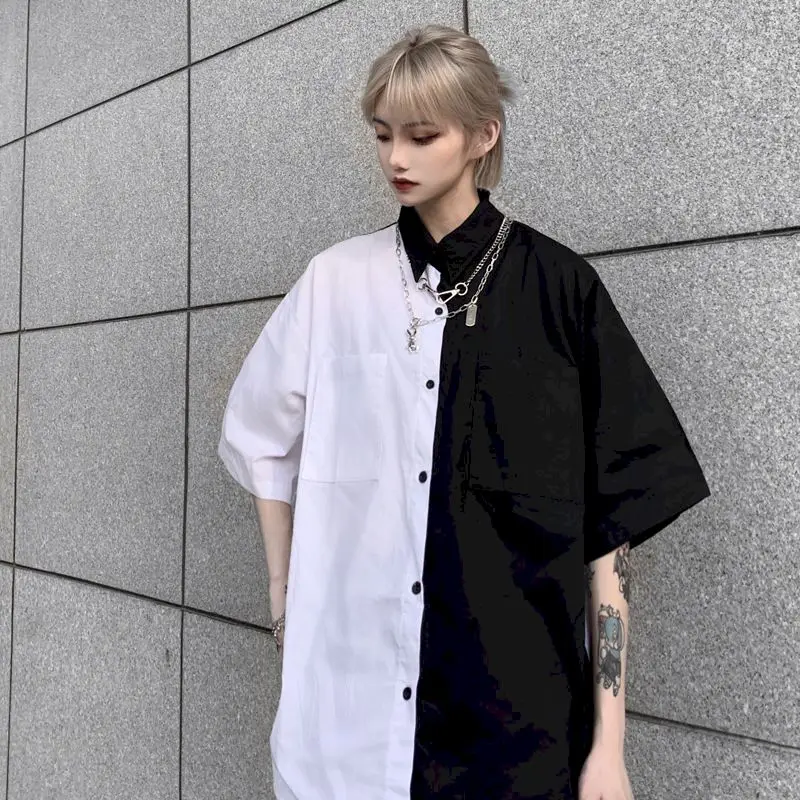 Женская блузка NiceMix, летняя, черно-белая, в готическом стиле, в стиле бойфренд, размера плюс