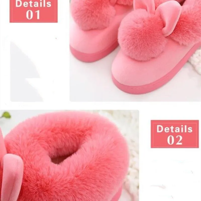 Женские меховые тапочки с кроличьими ушками, плюшевые бархатные зим...