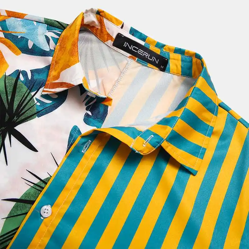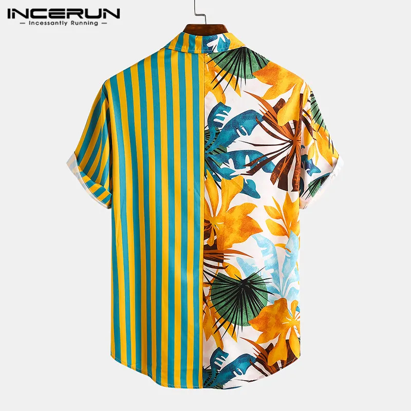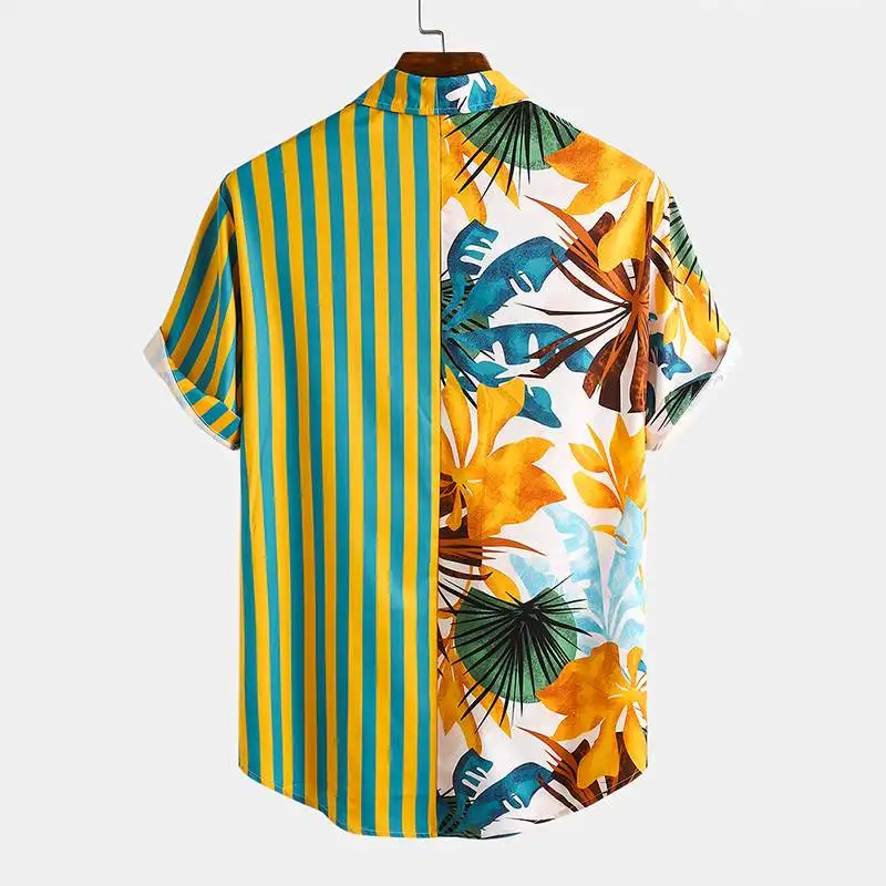 Рубашка мужская с отложным воротником, модная блуза с этническим принтом, с короткими рукавами, в стиле пэчворк, Повседневная Свободная мягкая, гавайская одежда для отдыха, лето 2021