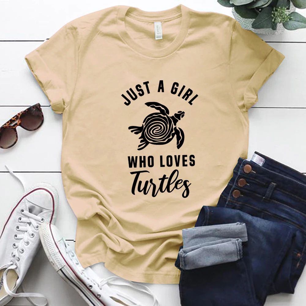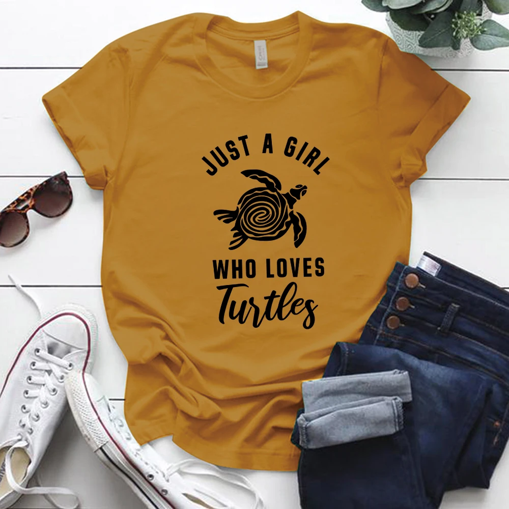 Футболка унисекс с надписью Just A Girl Who Loves черепаха, футболка с круглым вырезом, женские рубашки с графическим рисунком, модные топы Tumblr, одежда