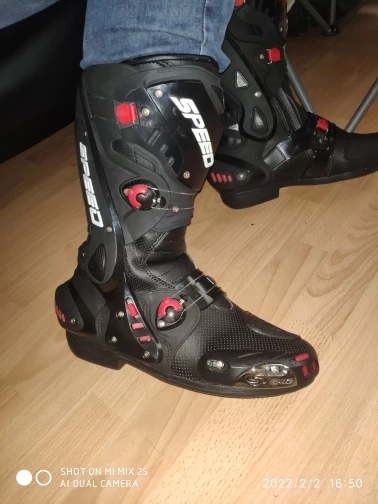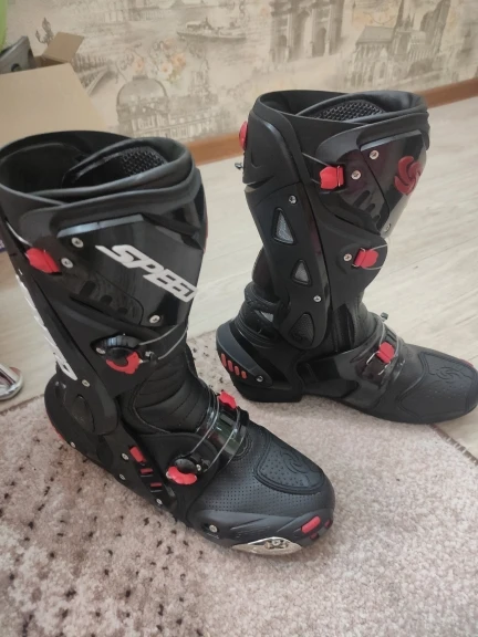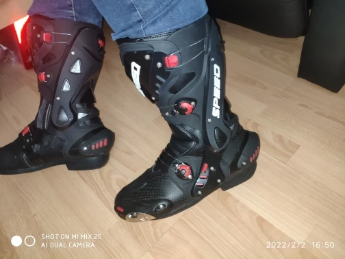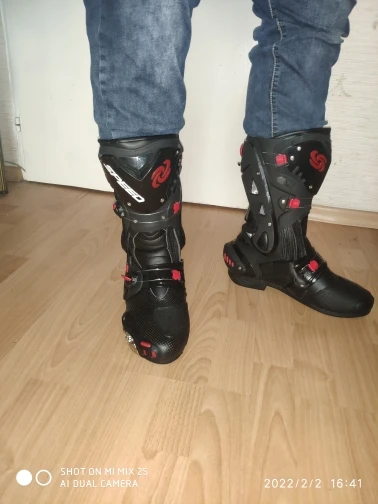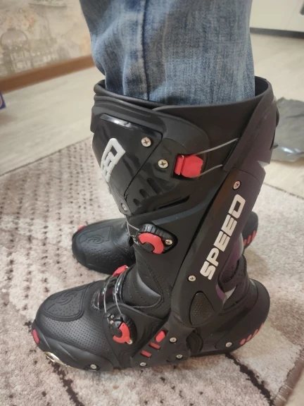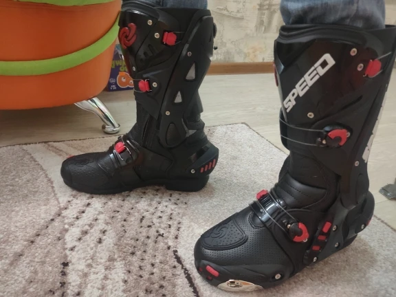 Мотоботы получил. Посылка шла полтора месяца. На вид качественные, без видимых косяков Размер подошёл отлично, на мою ногу 40 - 41 заказывал 8 размер. На ноге не жмут и не болтаются. Брал за 7980 р. Продавца рекомендую