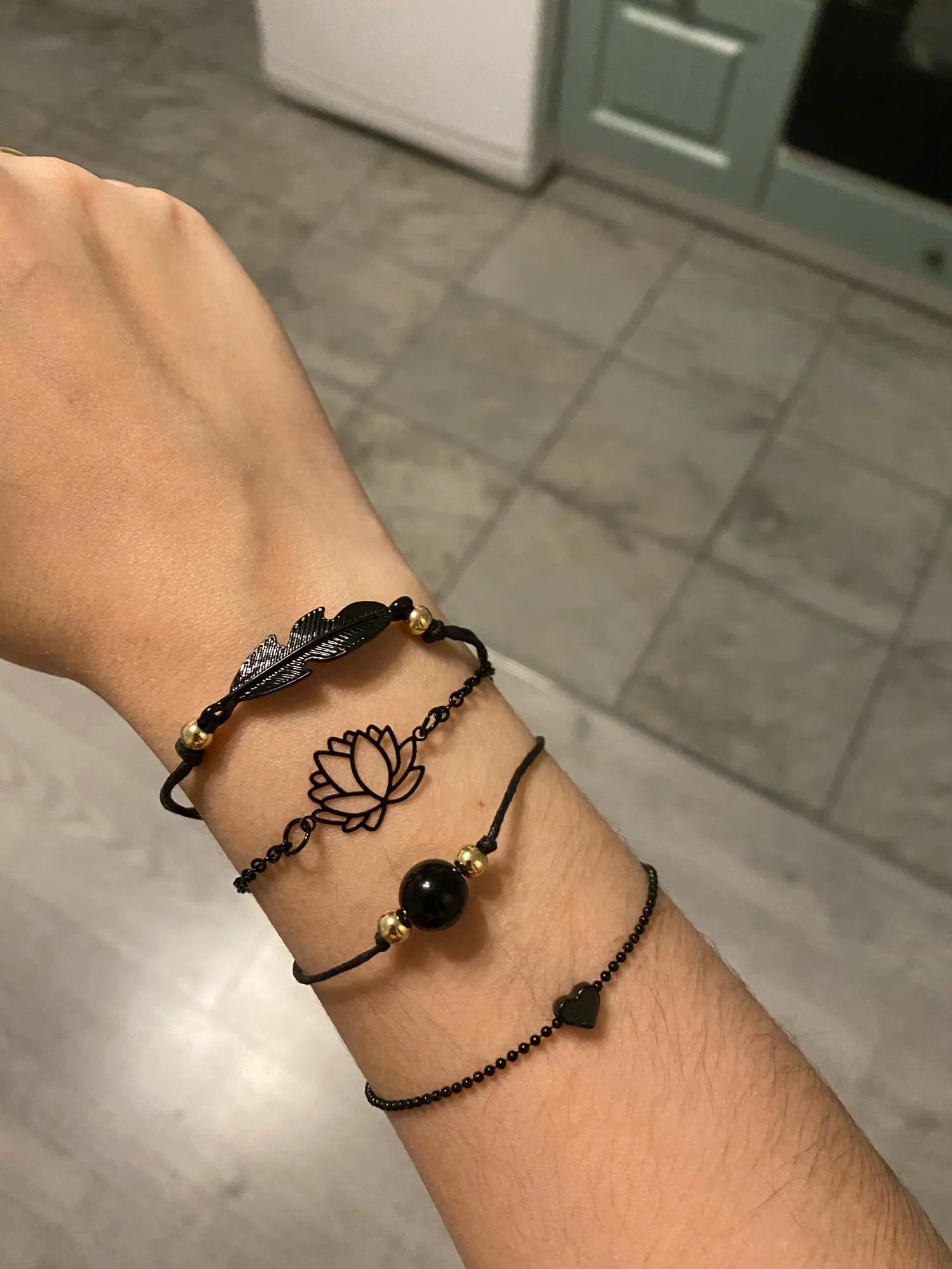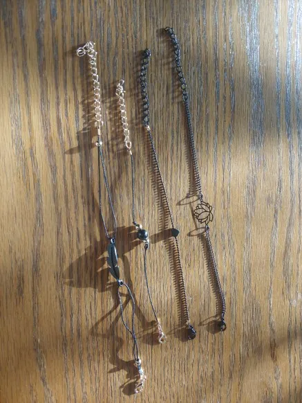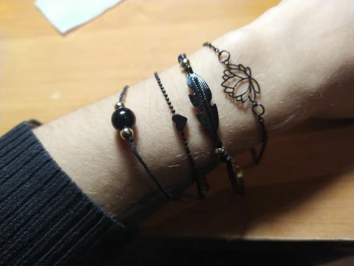 Браслеты пришли за полтора месяца до Тюмени. Хорошо упаковано в маленький пактик, все целое. Качество отличное, на черных браслетиках может немного заедать замочек. Цепочка для замочка очень длинная, подойдет на любую руку