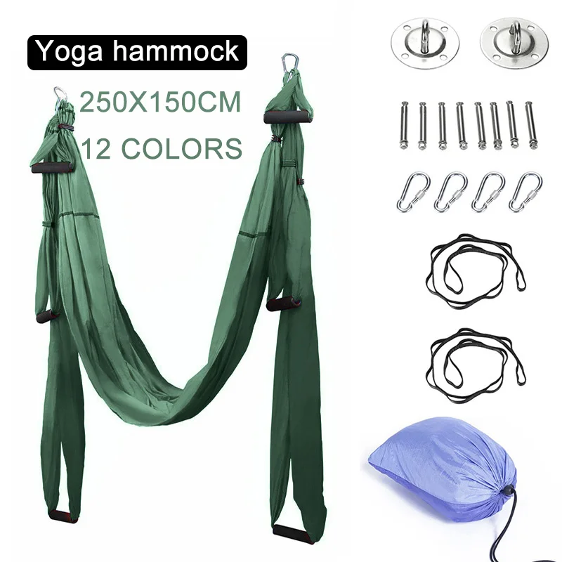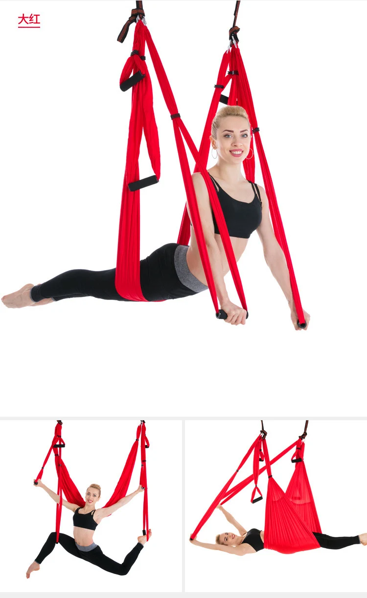 Полный комплект, гамак для йоги, потолок, летающие качели, 6 ручек, подвесной пояс для спортзала, антигравитационный, для йоги, пилатеса, гамак, упражнения, устройство для дома
