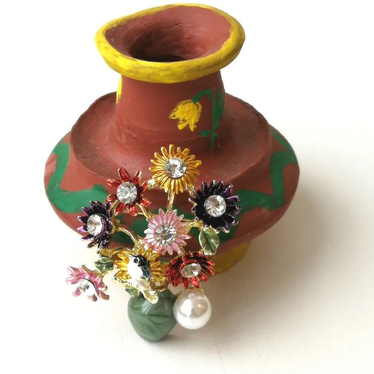 CUTE FLOWER BASKET BROOCH.