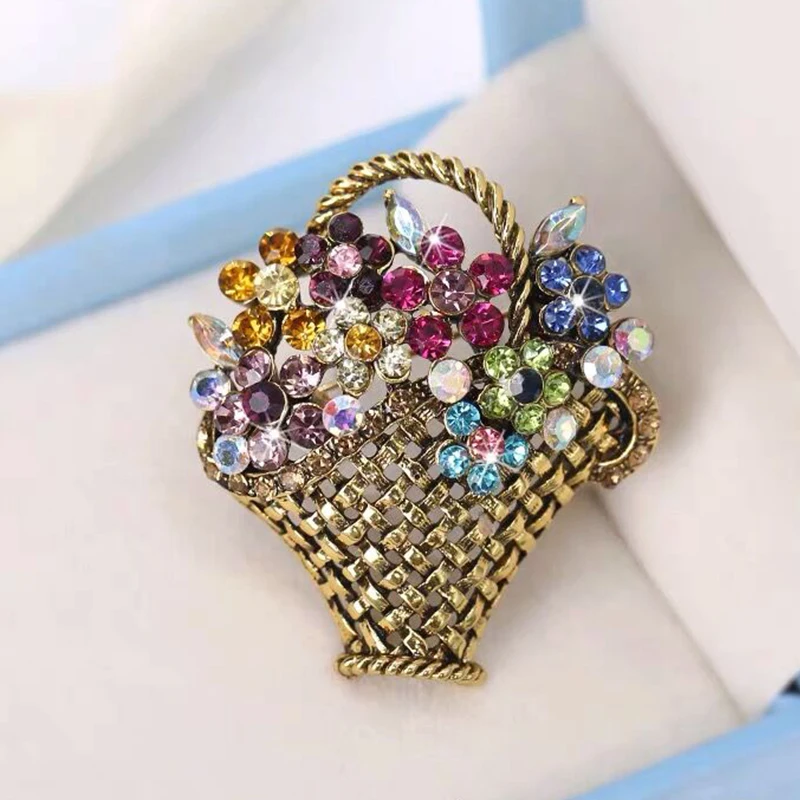 Женская Брошь в виде корзины, стразы