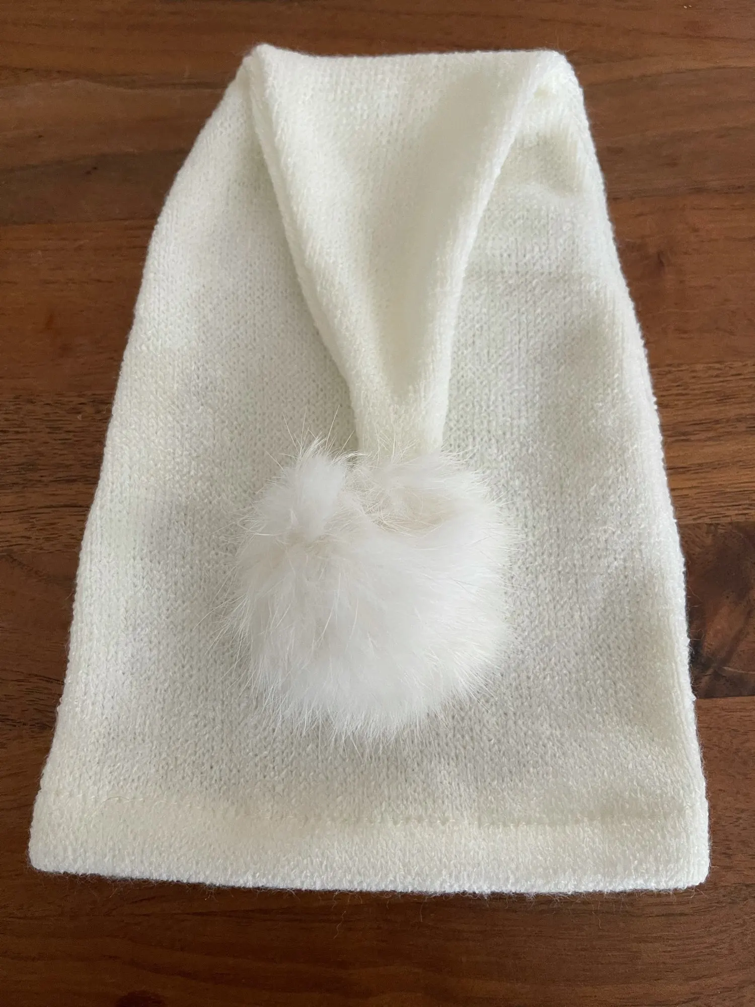 Шапочка для новорожденных, вязаная, с меховым помпоном