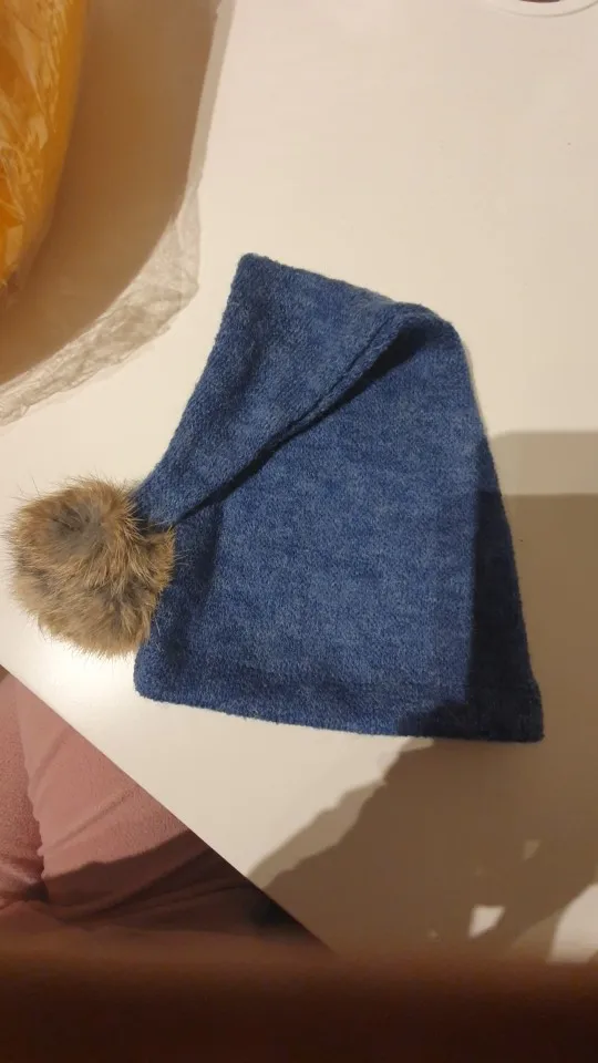 Хорошая шапочка. Пошита,конечно, не очень качественно, но для фотосессии на 1 раз пойдет. Распустился шов и поехала ткань, пришлось сразу зашивать в 2х местах. Пумпон маленький, но натуральный. Налезла на 3х месячного ребенка. Надеюсь и через 1,5 мес ещё влезим в нее. Шла около месяца.