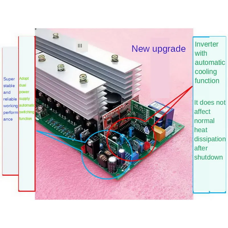 Эта печатная плата имеет следующие показатели производительности:1. Эта плата драйвера инвертора имеет функцию автоматической стабилизации выходного напряжения. Низкое напряжение батареи. Избыточное напряжение батареи. Защита от перегрузки и перегрузки по току. Защита от перегрева продукта и другие преимущества2. Форма выходного сигнала-чистая Синусоидальная волна. Достаточно мощности нагрузки. Мгновенная грузоподъемность сильна. Источник питания запускается быстро. Повышение температуры низкое во время длительной работы. Нет помех для электрических приборов. Это идеальная плата питания инвертора для домашнего и промышленного использования и энтузиастов. Первый выбор3. Высокая эффективность преобразования цепи и стабильное выходное напряжение без дрейфа4,110 V или 220V Выходное напряжение инвертора может быть отрегулировано само по себе