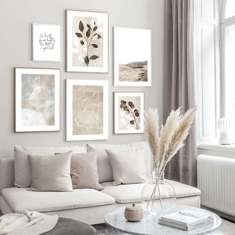 Настенная картина с изображением галереи, теплого бежевого цвета, а...