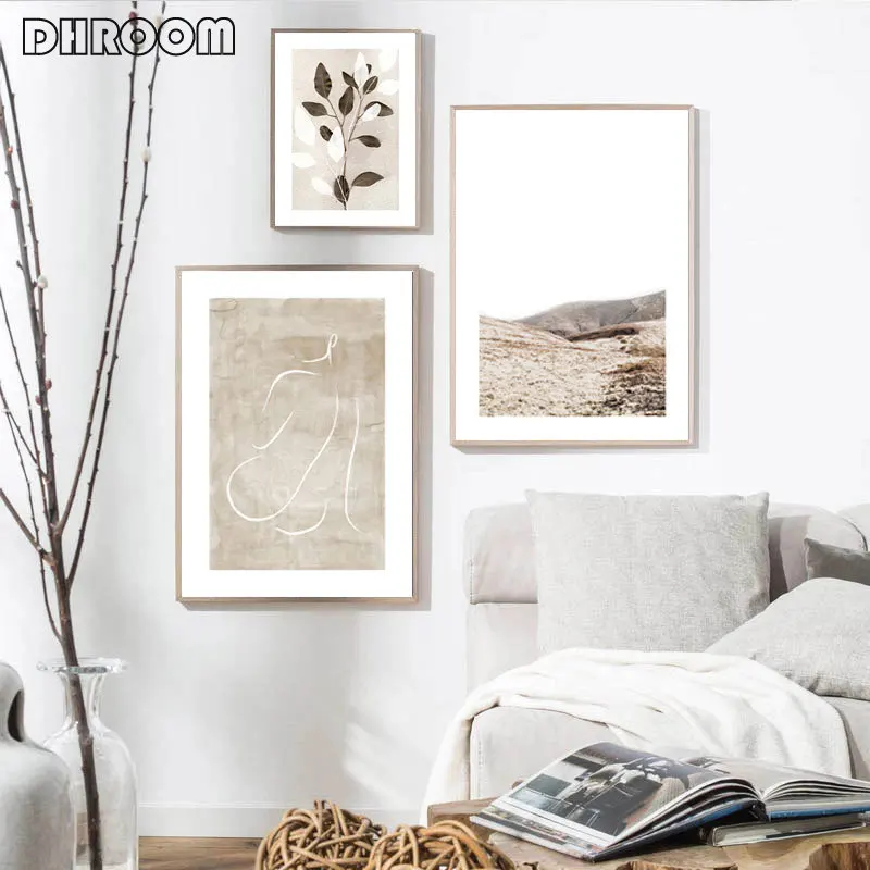 Скандинавский пейзаж, настенный постер на холсте, абстрактный лист,...