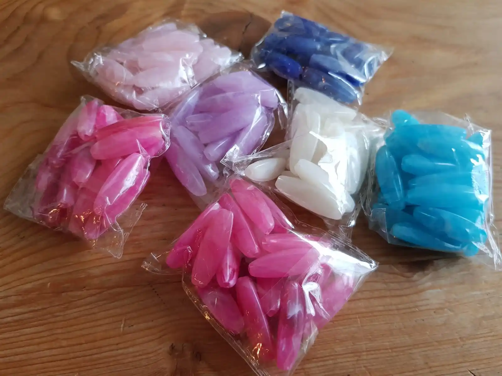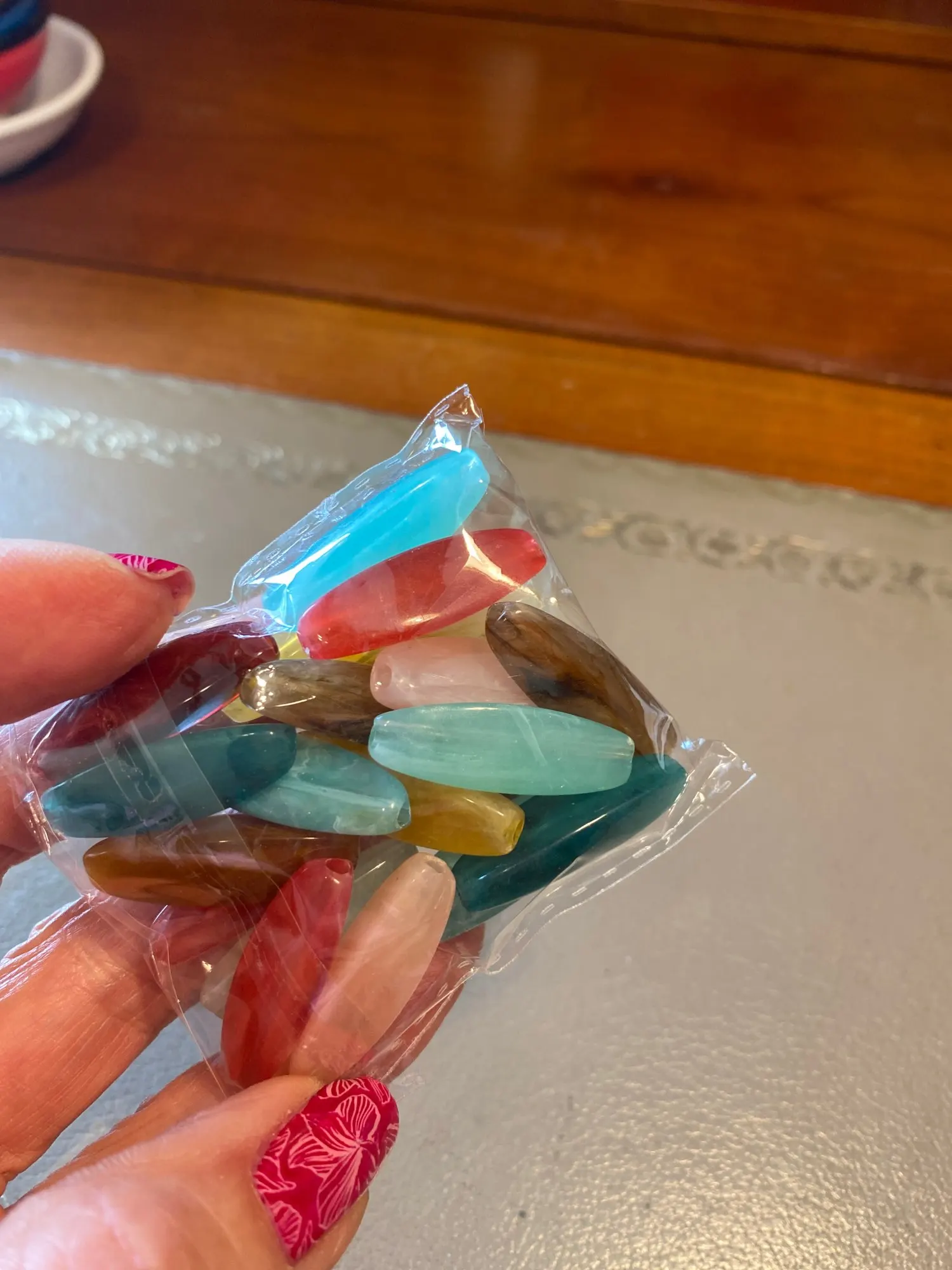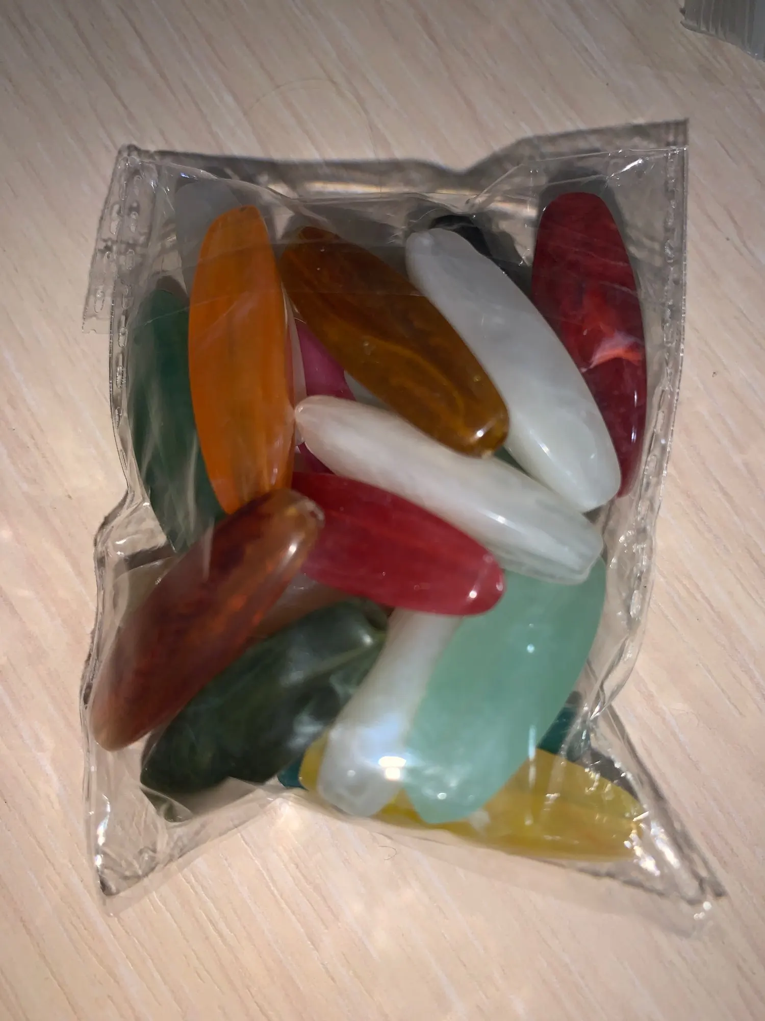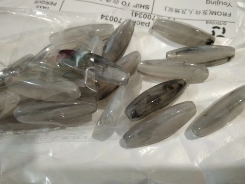 Микс, 20 штучек. 27х9 мм. Акрил, а смотрятся благородно, как стекло или как камень. Отверстие широкое. Рекомендую, красивые бусины. Цена радует. Описание верное, всё точно. Рекомендую, отличный товар, отличное обслуживание. Доехали всего за 24 дня! Спасибо, уважаемый продавец! Здоровья вам, всех благ! И процветания вашему бизнесу!