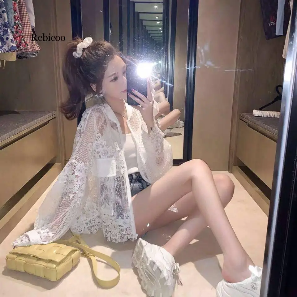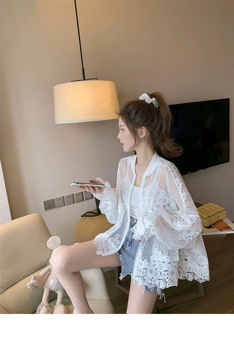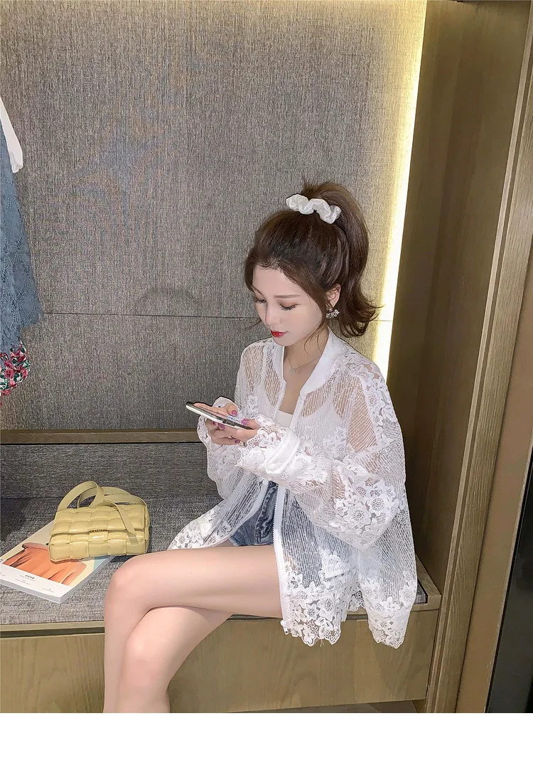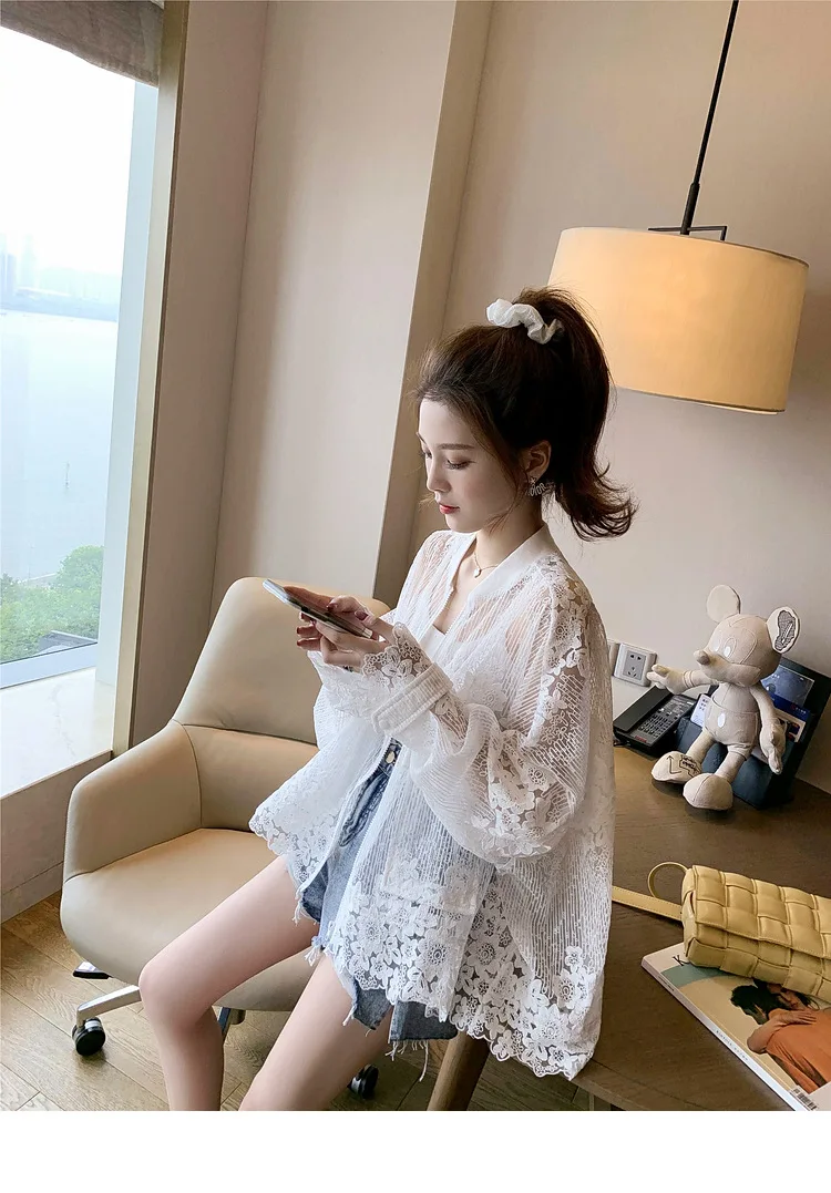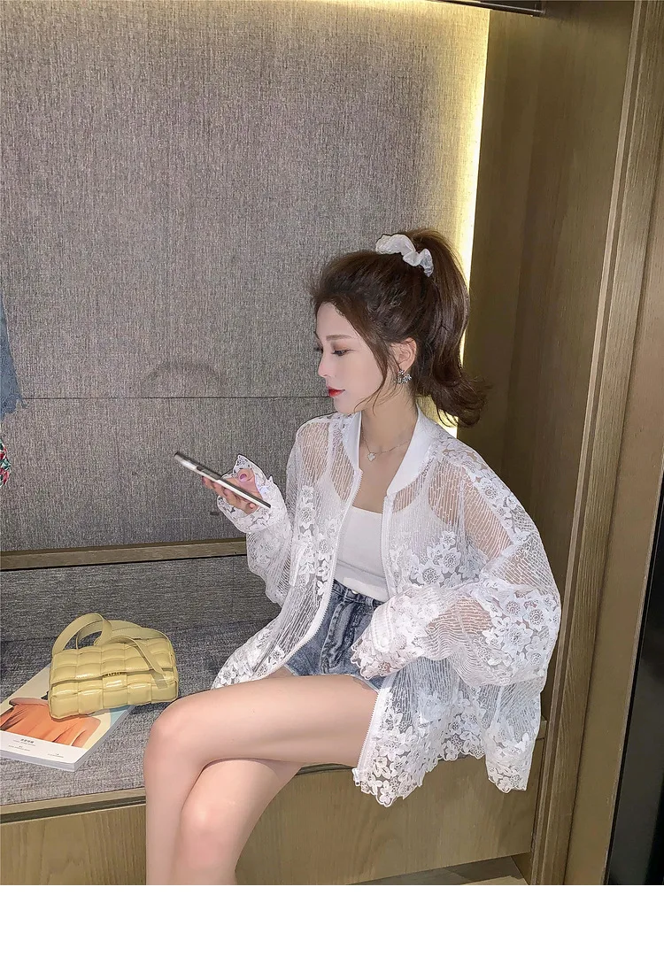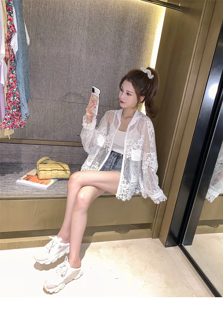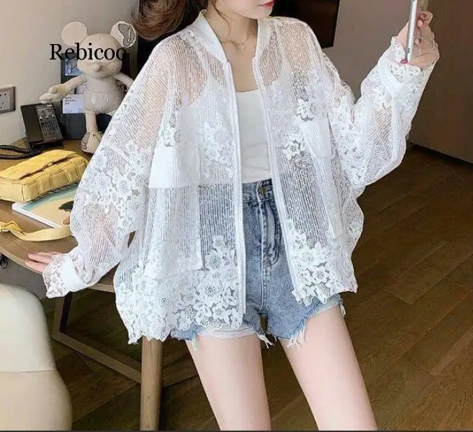 Женская кружевная парка, повседневная ажурная куртка большого размера с цветочной вышивкой, свободная верхняя одежда, на лето