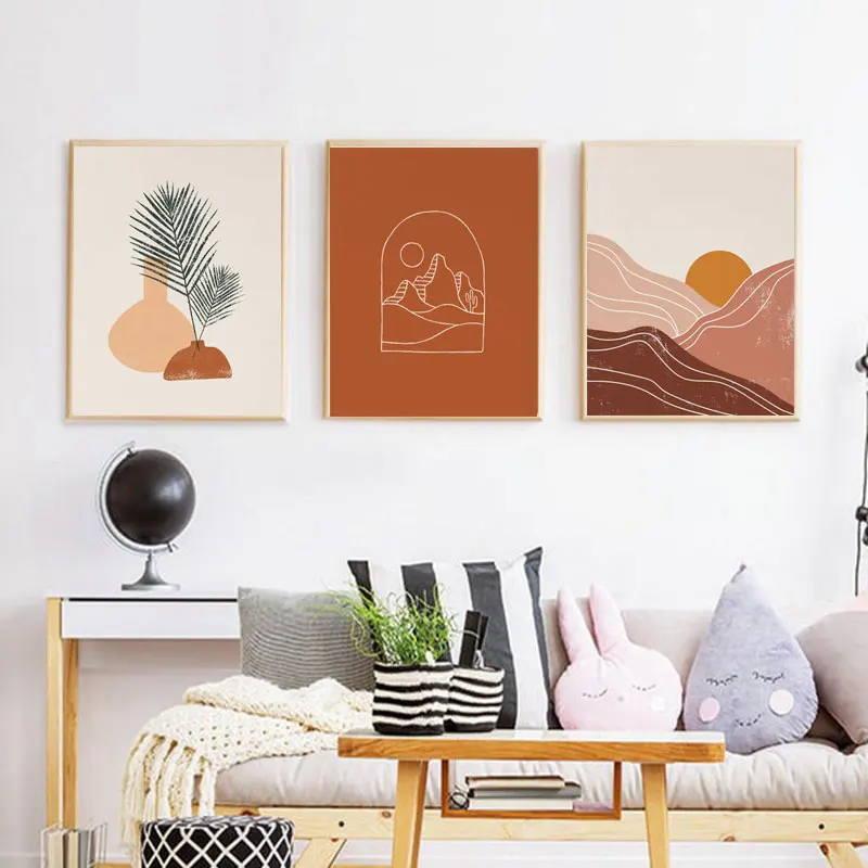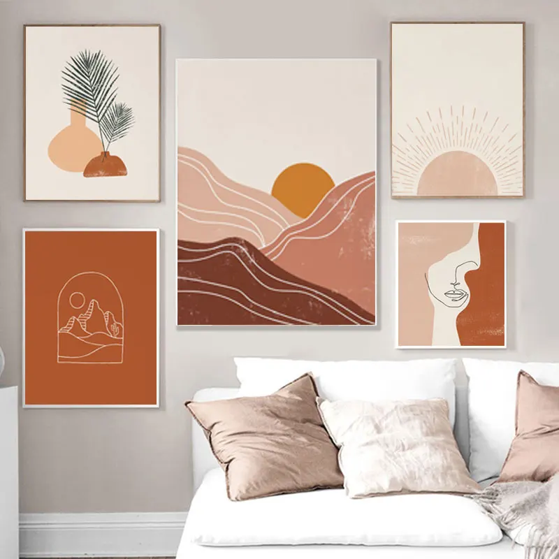 Художественная печать в стиле бохо, абстрактный пейзаж, постер, комплект, линия, художественное изображение лица, настенная живопись, горизонтальная картина, картина от солнца на холсте, Декор