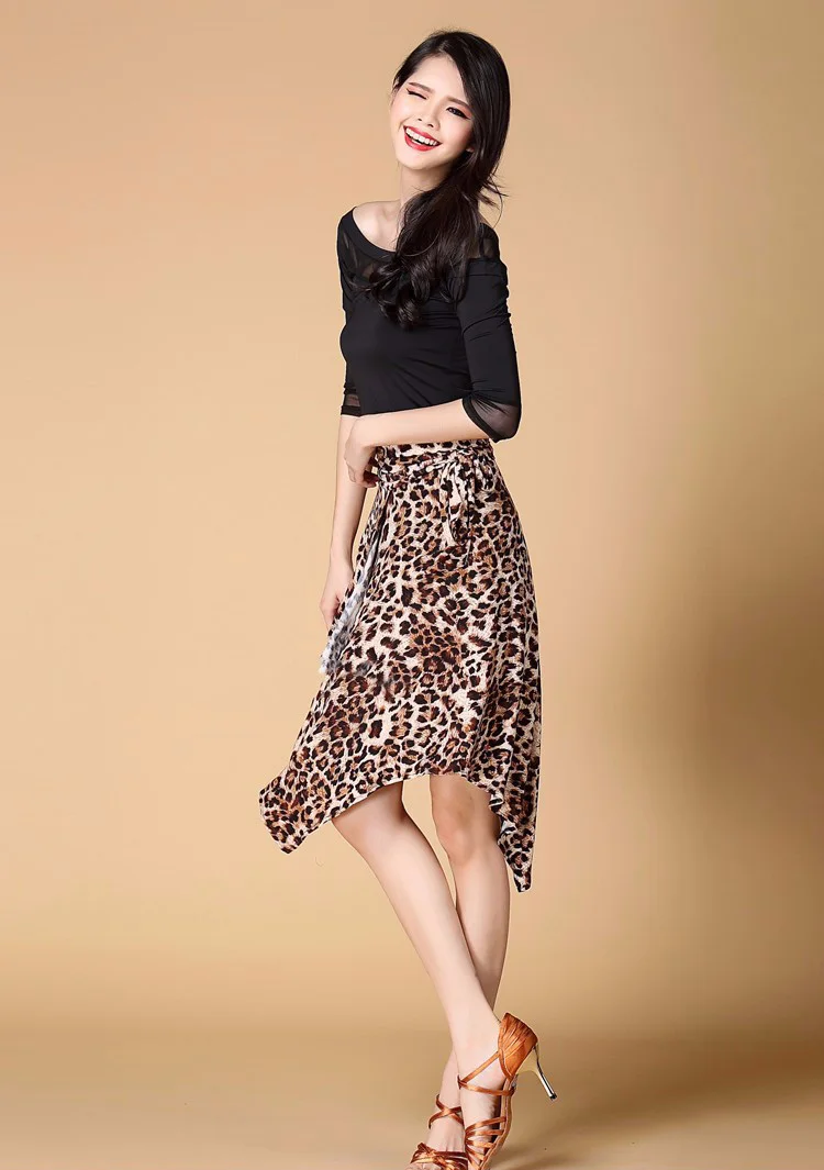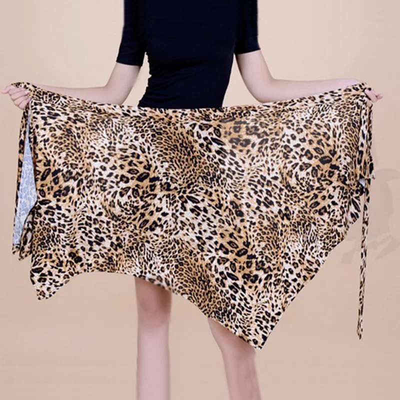 Женские юбки для латиноамериканских танцев, юбка с леопардовым принтом для соревнований, женская одежда для бальных танцев, женский тренировочный шарф на бедрах