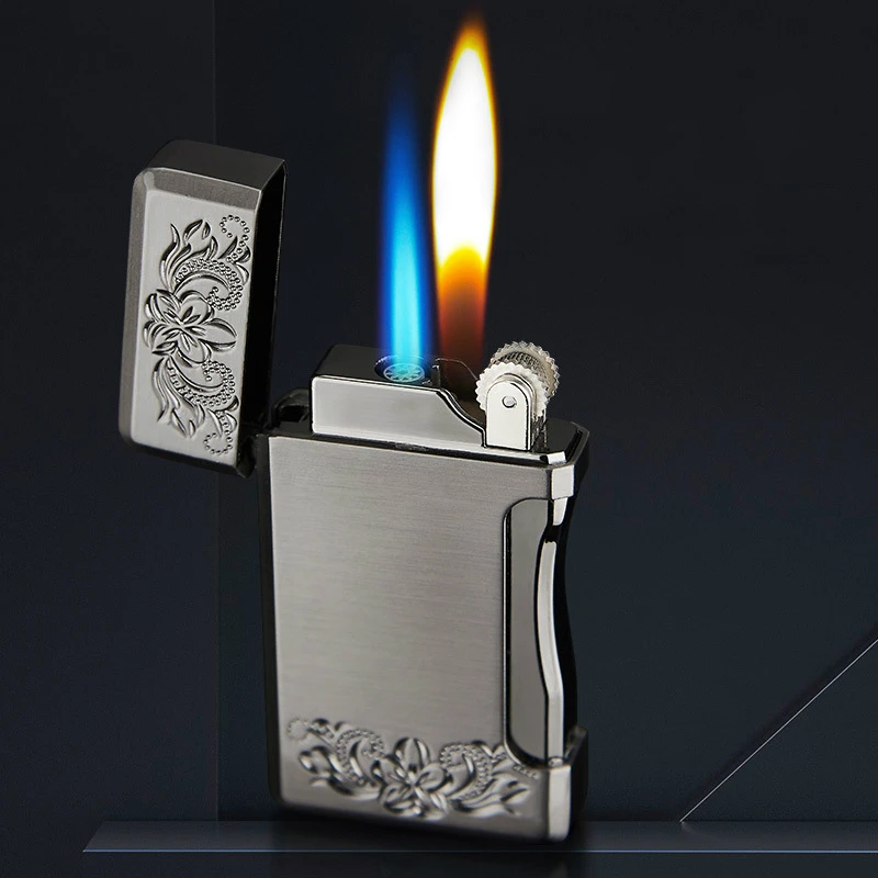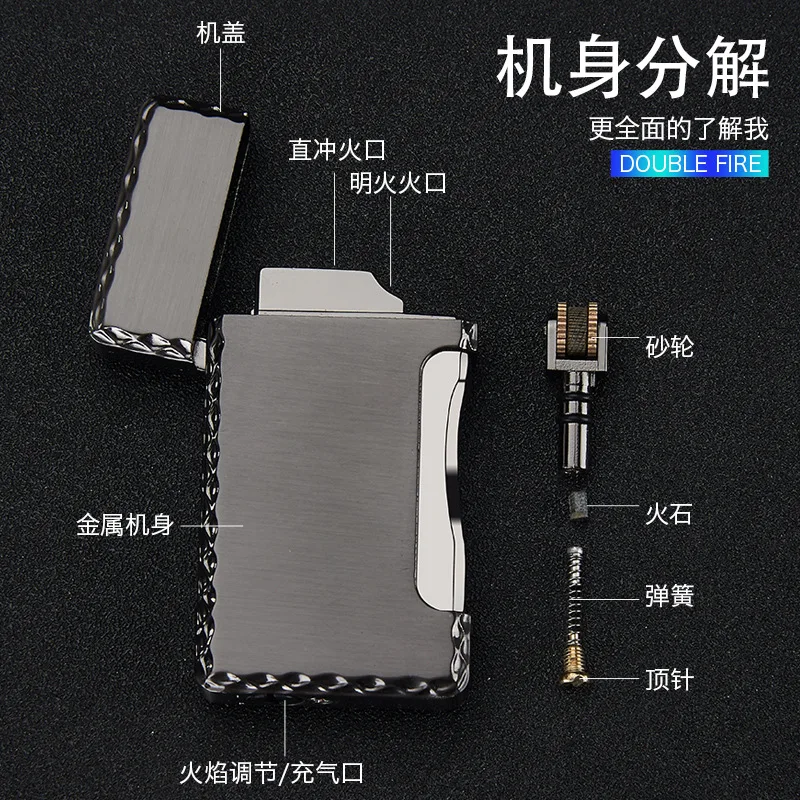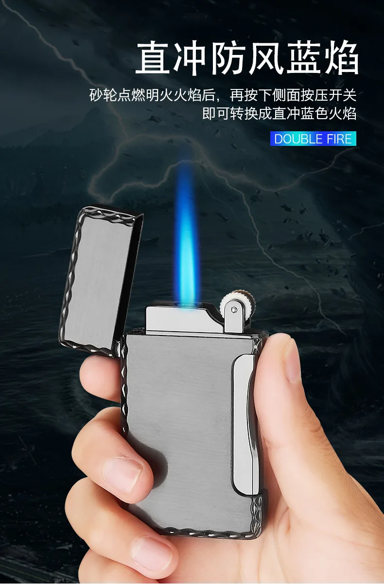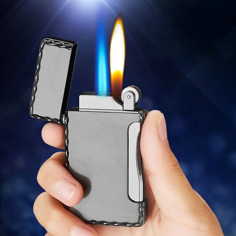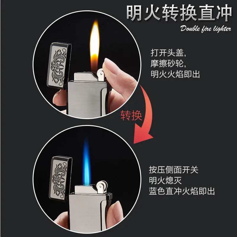 Новинка, газовая зажигалка с синим пламенем и открытым огнем, зажигалка Два в одном, надувные бутановые зажигалки для сигарет, гаджеты для курения для мужчин