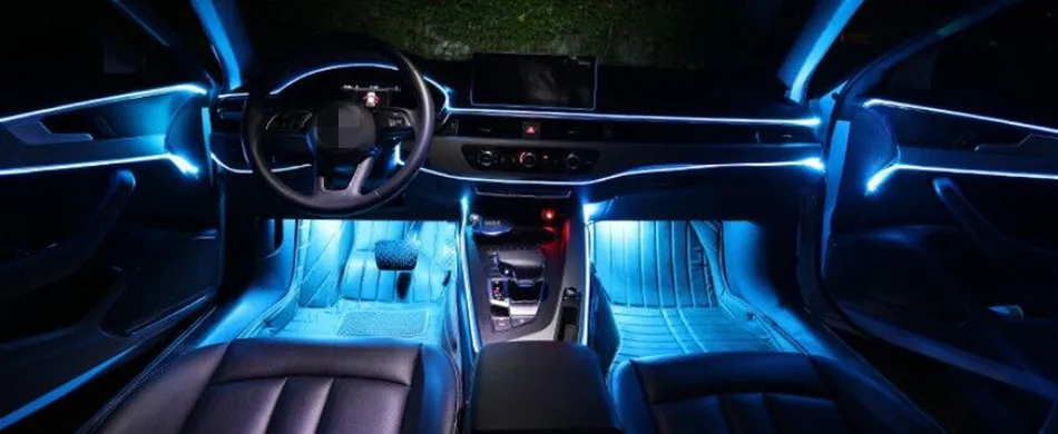 Автомобильная неоновая полоса EL, 6 м, светодиодная RGB-подсветильник ка с управлением звуком, декоративный автомобильный рассеянный свет, автомобильные атмосферные лампы с подсветильник кой 12 В er и USB-линией