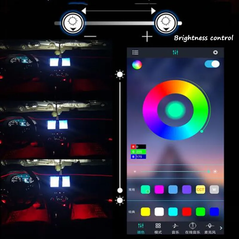 Аксессуары для интерьера автомобиля, атмосферная лампа, светильник вая лента, приложение, управление звуком, Светодиодная лента, сделай сам, приборная панель, консоль, декоративная лампа