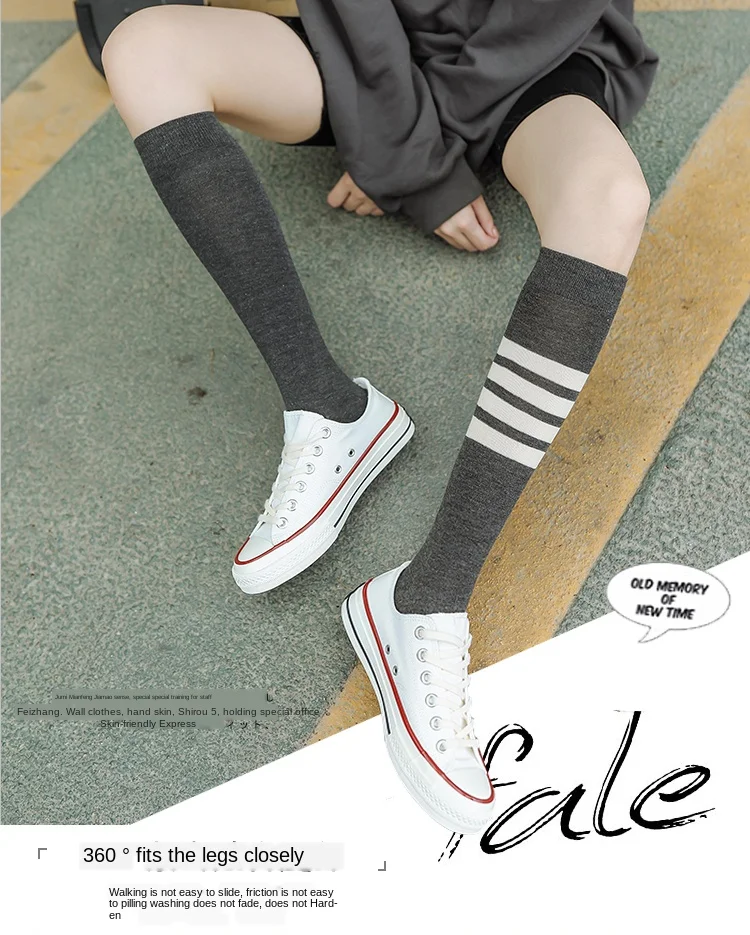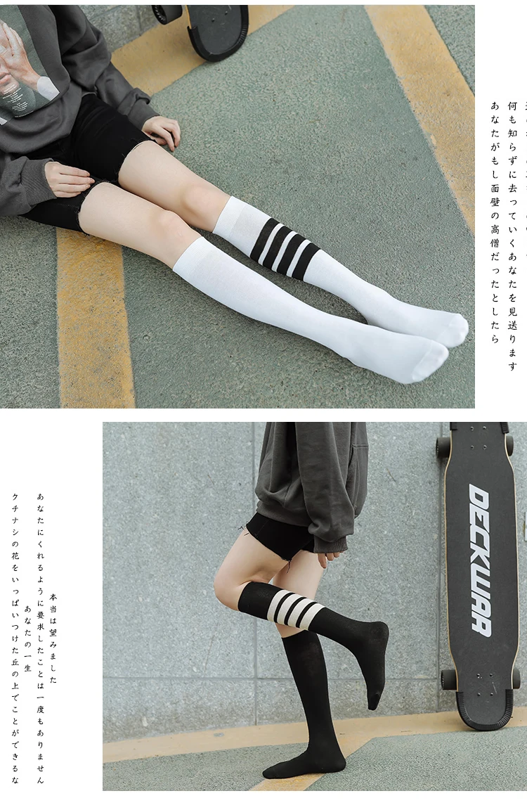 Гольфы, корейские, полосатые, хлопковые, уличные