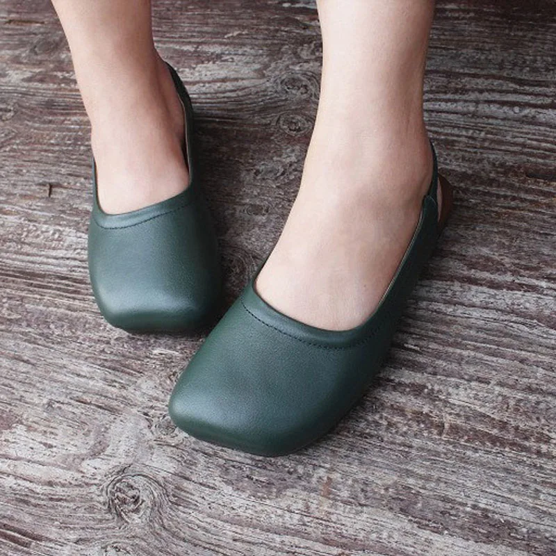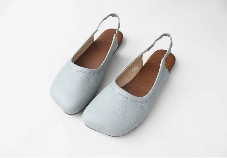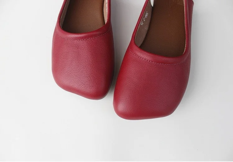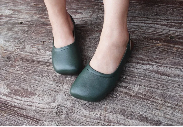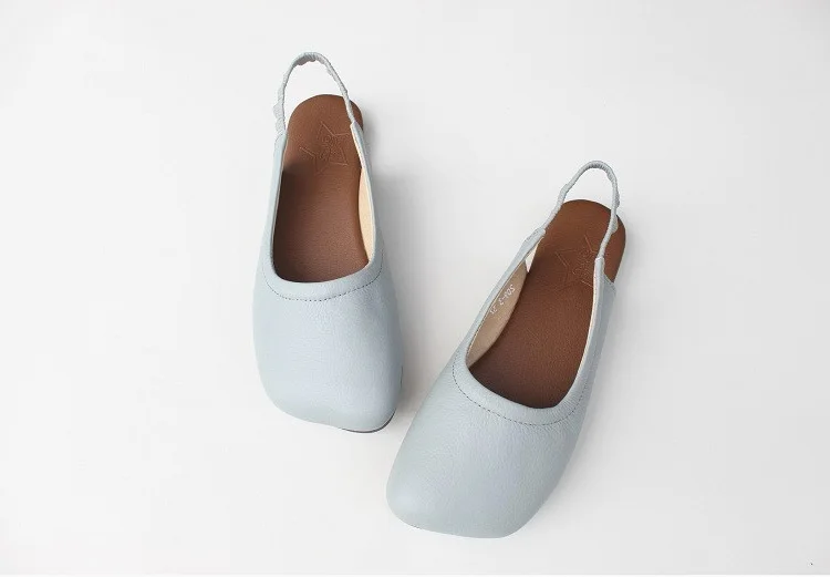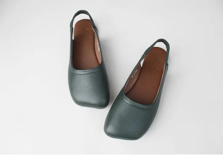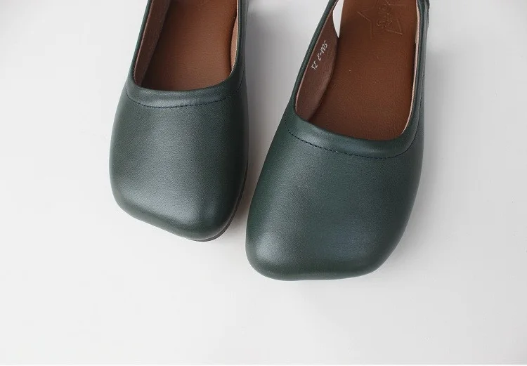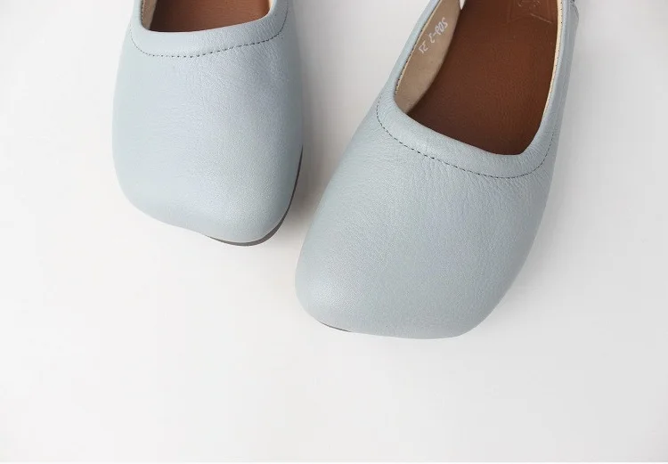 Женские туфли на плоской подошве, из натуральной кожи, с квадратным носком, Летние балетки без застежек