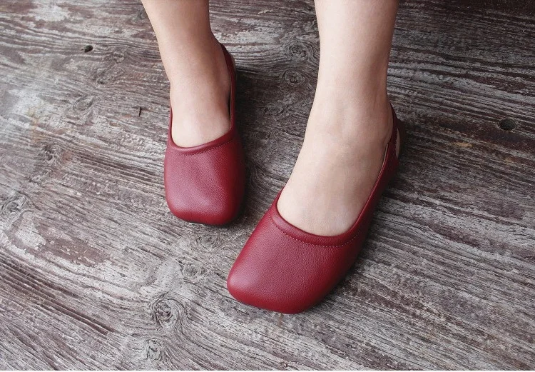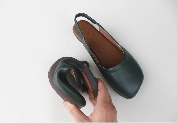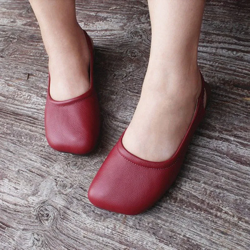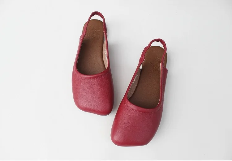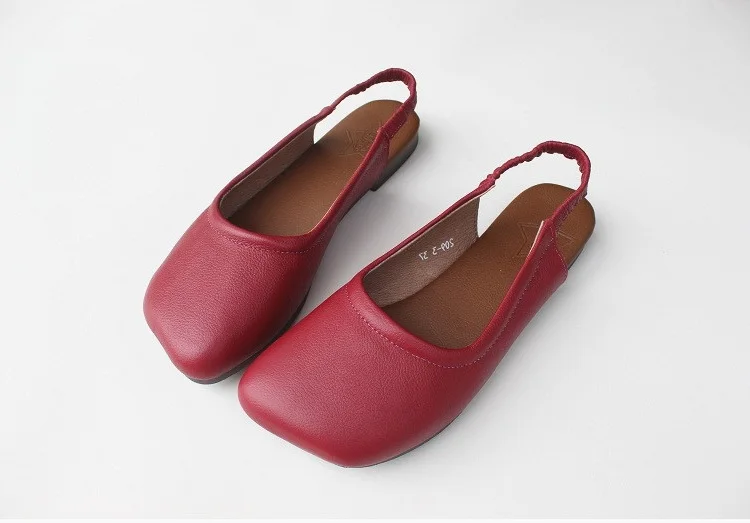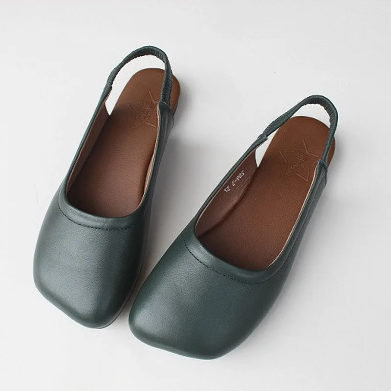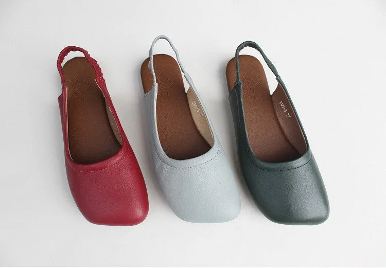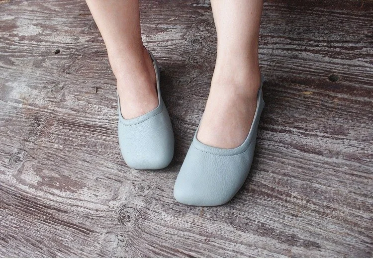 Женские туфли на плоской подошве, из натуральной кожи, с квадратным носком, Летние балетки без застежек