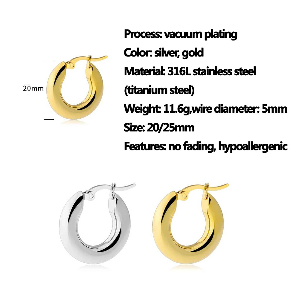 Серьги-кольца женские из хирургической стали, толстые круглые, толс...