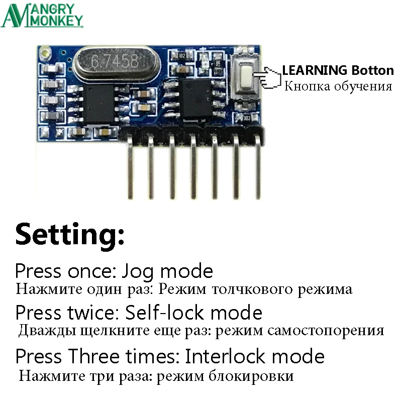 Если вам нужно настроить другие режимы декодирования, такие как PT2262, HT6P20B, HCS301, T301A, T301E, HT6P20B, HCS301, T301A, E301E и т. Д.; Необходимо заказать более 500 шт. (каждый) добро пожаловать на заказ, пожалуйста, свяжитесь с нами.