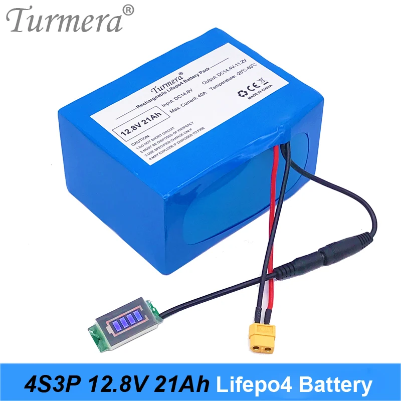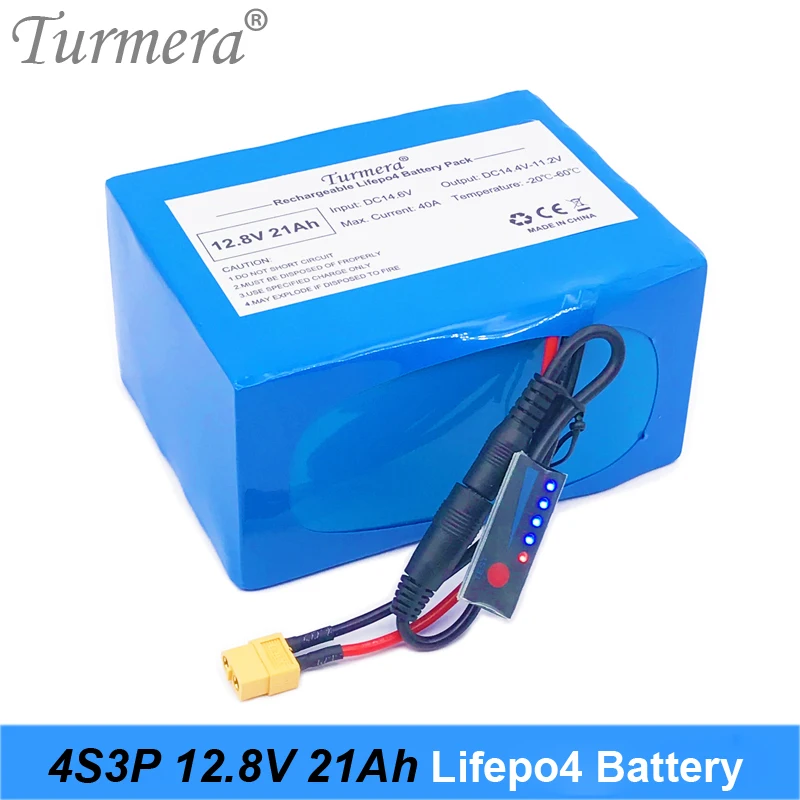 Turmera 32700 Lifepo4 Батарея пакет 4S3P 12,8 V 21Ah с 4S 40A сбалансированный BMS для электрического лодочного и бесперебойный Питание 12V + Портативный Ёмкость индикатор