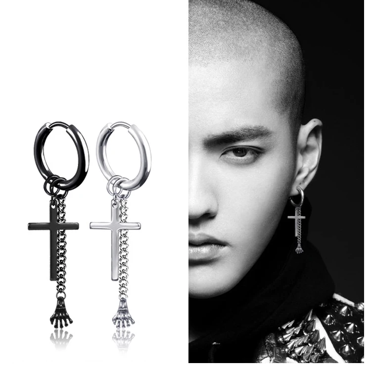 Мужские Серьги-клипсы хип-хоп панк гипоаллергенные серьги из титано...