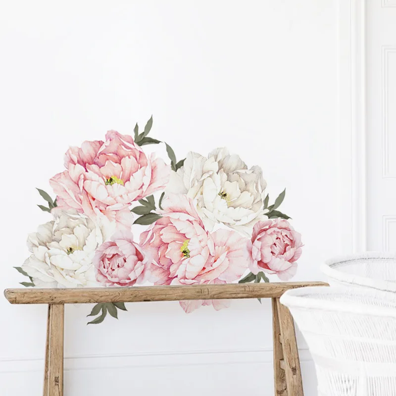 Простые акварельные пионы, комбинированные наклейки, съемные самоклеющиеся обои из ПВХ, украшение для дома