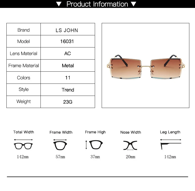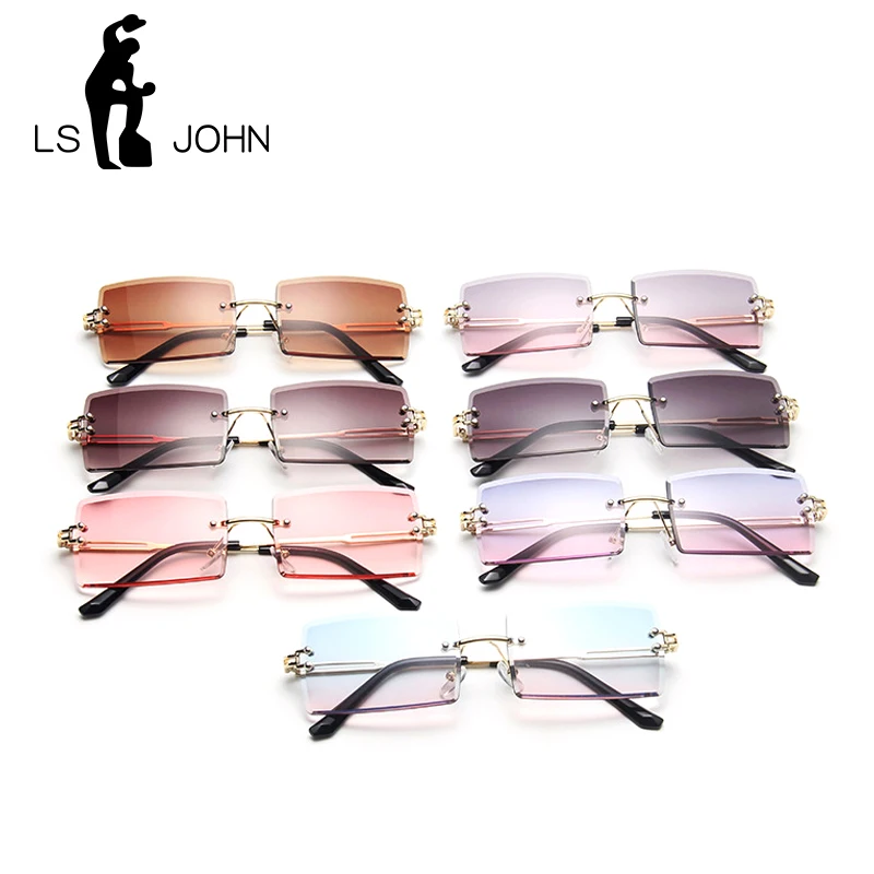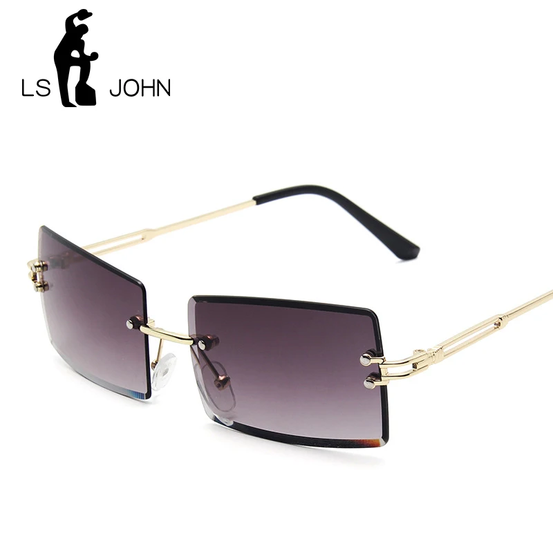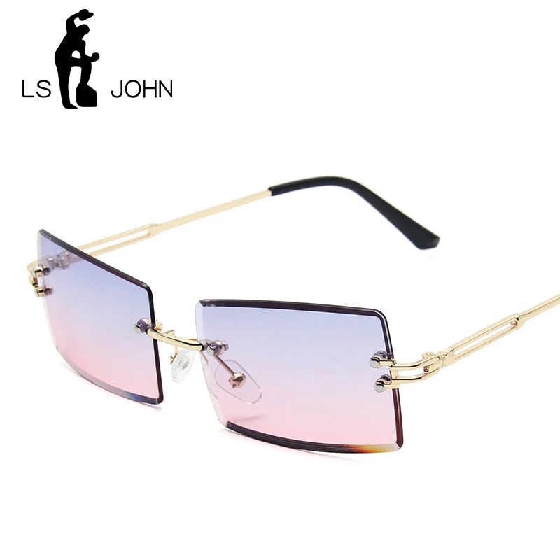 Женские прямоугольные солнцезащитные очки LS JOHN, маленькие квадратные очки без оправы, лето 2020, стиль для женщин, UV400, линзы зеленого чая