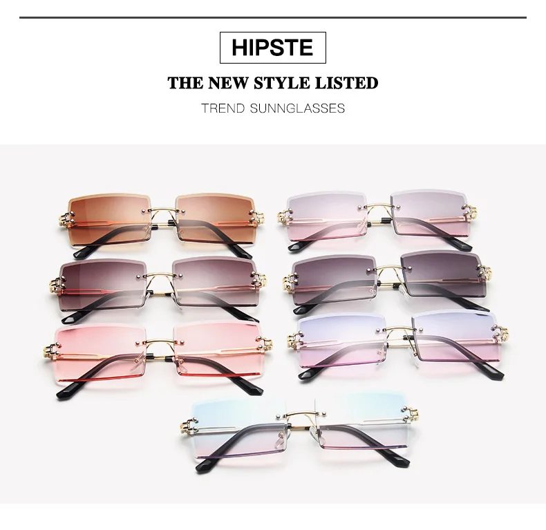 Очки солнцезащитные женские квадратные без оправы, в стиле ретро