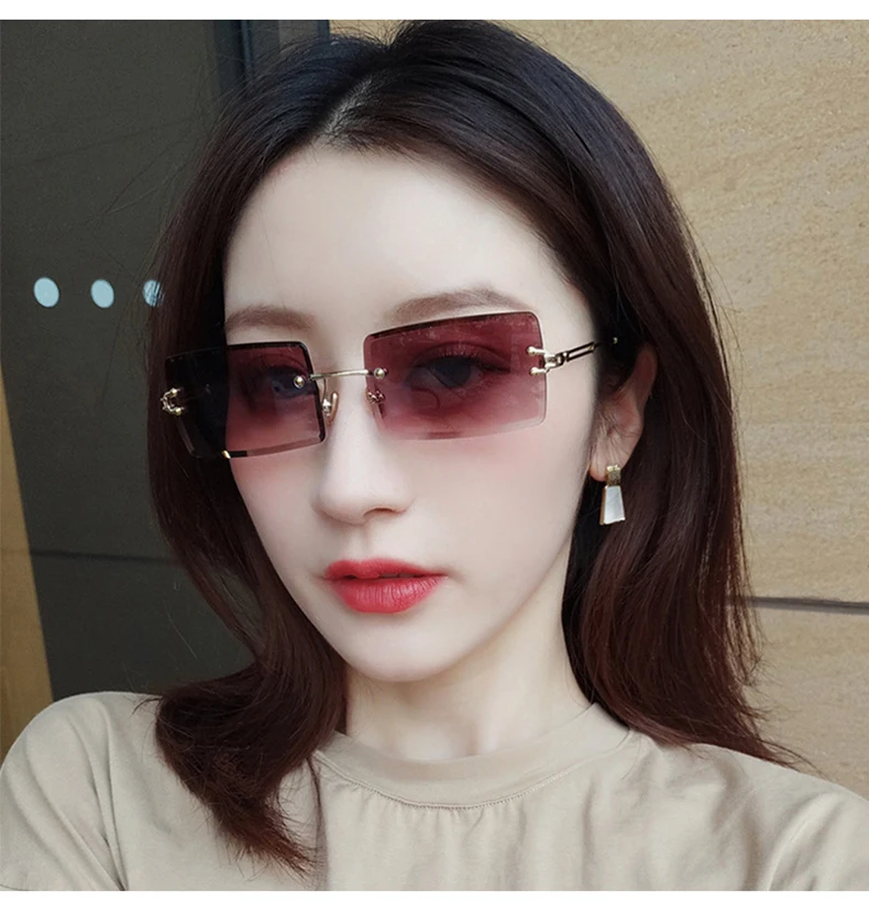 Женские солнцезащитные очки без оправы, Винтажные Солнцезащитные оч...