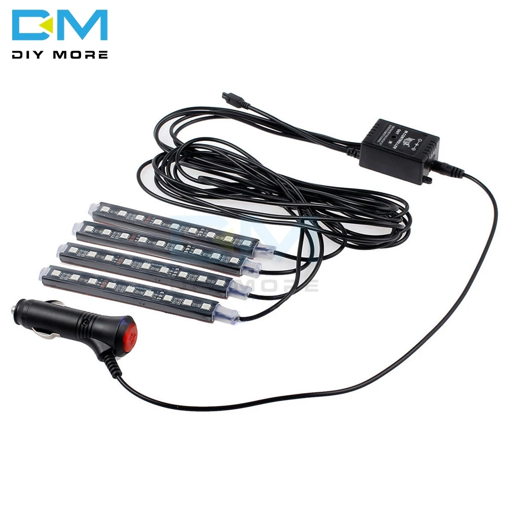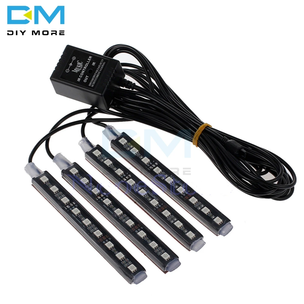 Светодиодная лента RGB, 4 шт., для салона автомобиля, 12 В, 8 Вт