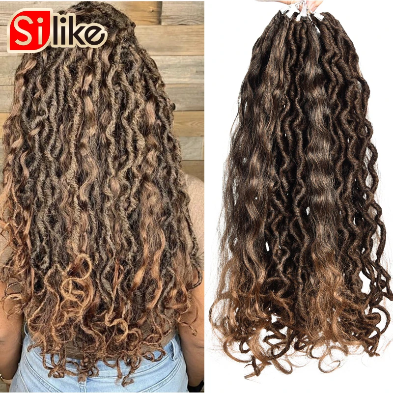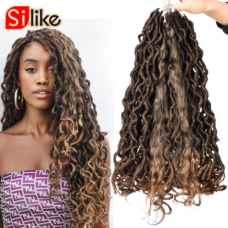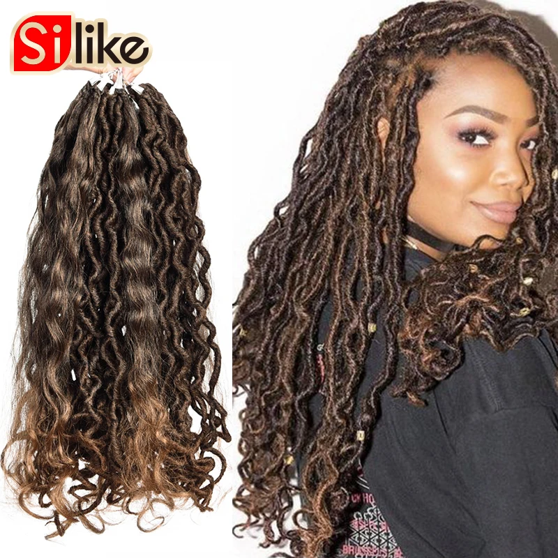 18 дюймов Boho Locs вязание крючком плетение волос ручной работы дреды искусственные Locs С Curl заканчивается синтетических богемный волос для Для женщин
