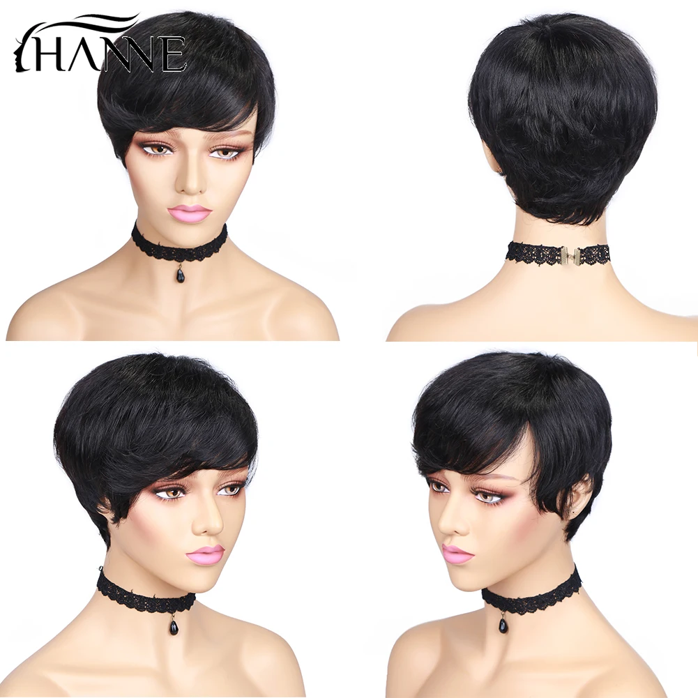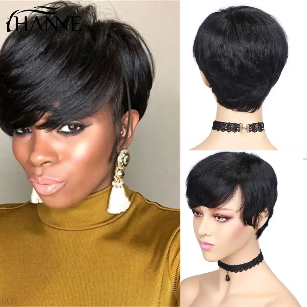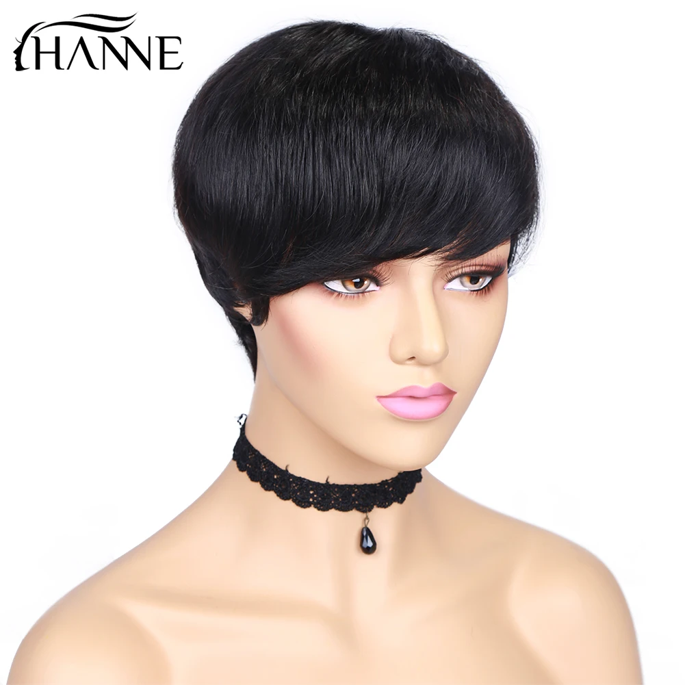 Волосы HANNE человеческие волосы парики вырезанные Пикси парики короткие прямые бразильские человеческие парики для чернокожих женщин