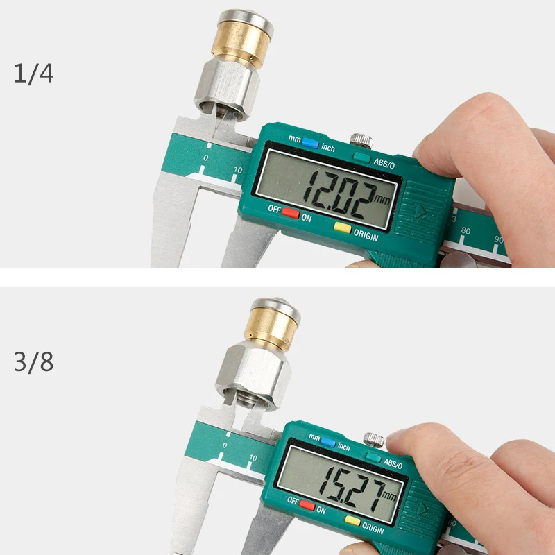 Размеры, указанные в дюймах, неверны: 1/8 "= 3,175 мм 3/8 дюймов = 9,525 мм... Заказанные и заказанные 3/8 дюймовые розетки соответствуют 5/8 дюйма или 15,876 мм, это проблема преобразования, слишком плохо, я заказал 4 кнопки. (две из которых еще не получили вращения. С другой стороны, качество кажется очень хорошим и безупречным. Первая проблема после более чем 150 заказов С уважением, с уважением