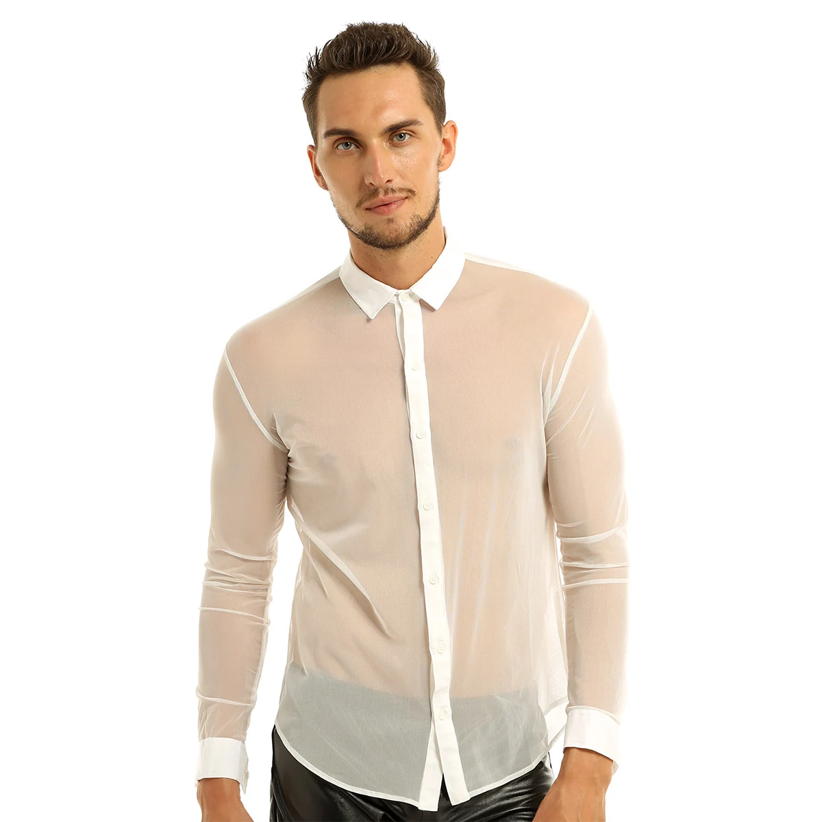 Мужское Прозрачное нижнее белье, прозрачная Сетчатая футболка с длинным рукавом, черные футболки для геев