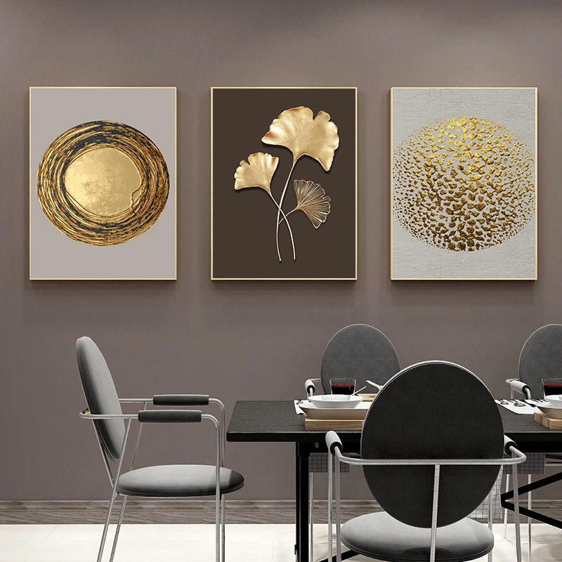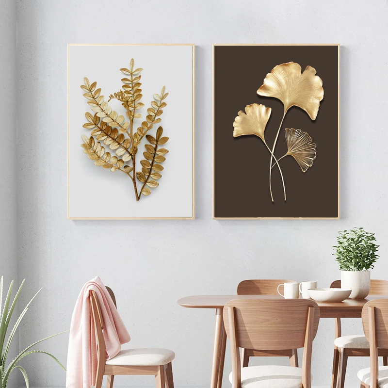 Постер с золотыми листьями, Абстрактная Картина на холсте, современная настенная Художественная печать, декоративная картина в нордическом стиле, украшение для гостиной и дома
