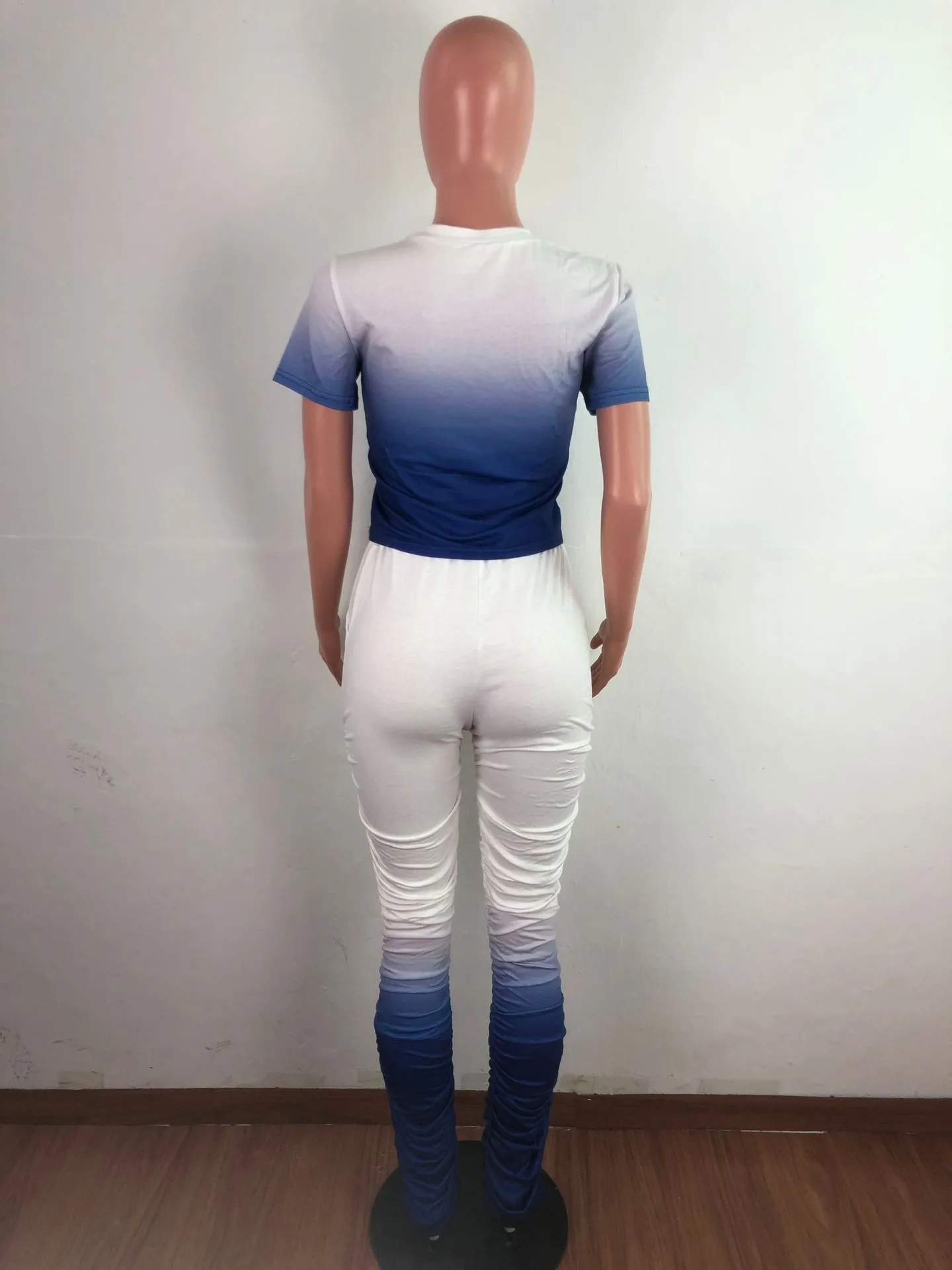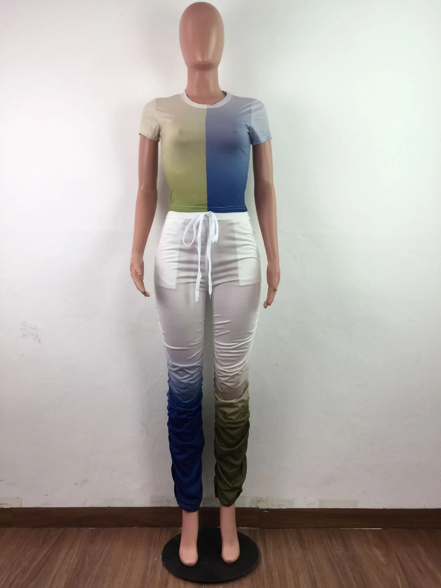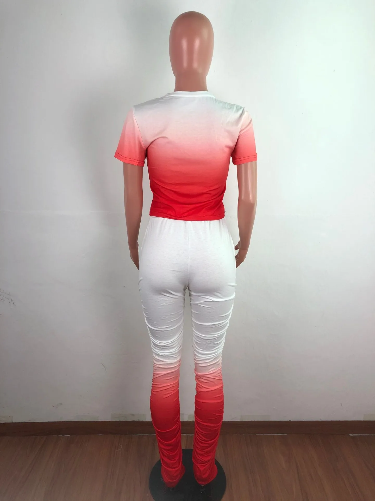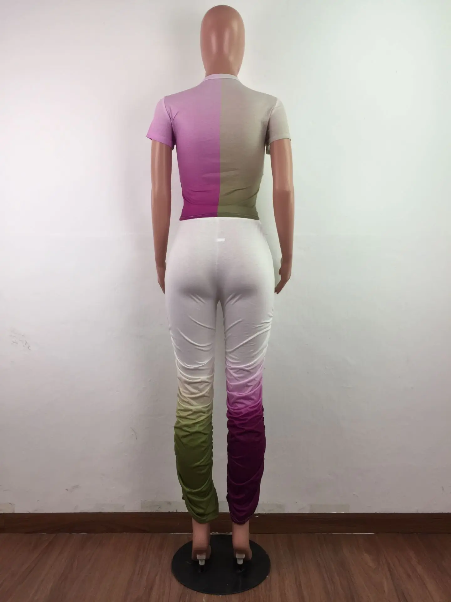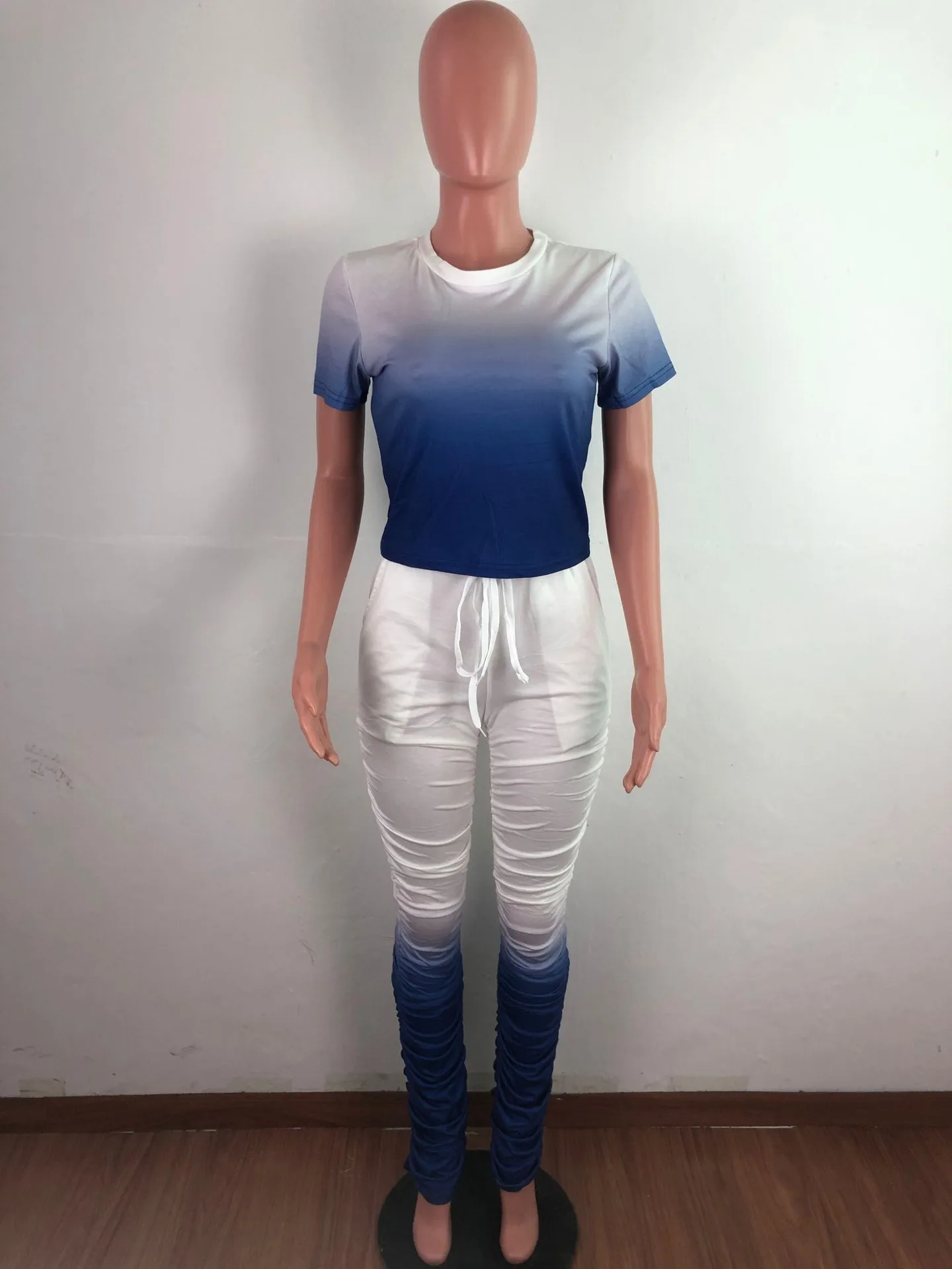 JRRY Для женщин костюмы Двойка комплект короткий рукав топ длинные расклешенные брюки Комплект из 2 предметов гофрированные спортивные костюмы с рисунком теплая одежда для улицы