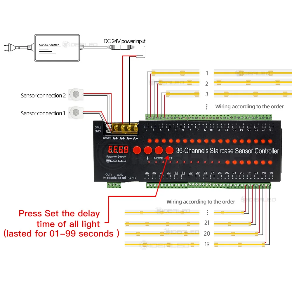 Светодиодная лента с датчиком движения для лестницы, беспроводной комнатный светильник с затемнением, гибсветодиодный LED полоска для создания атмосферы, ночник, 24 В