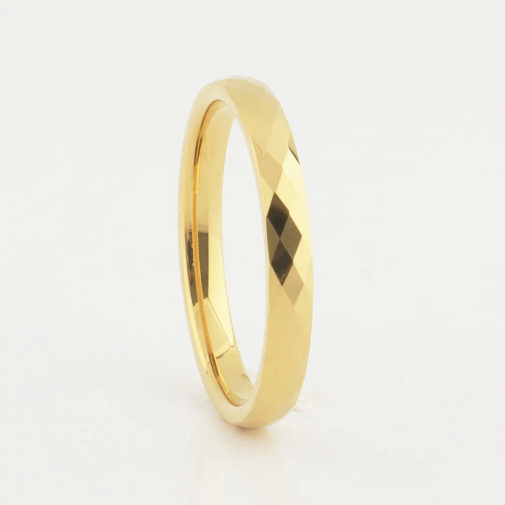 Классические блестящие многогранные золотые кольца из карбида вольф...