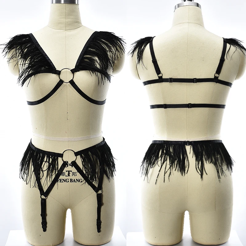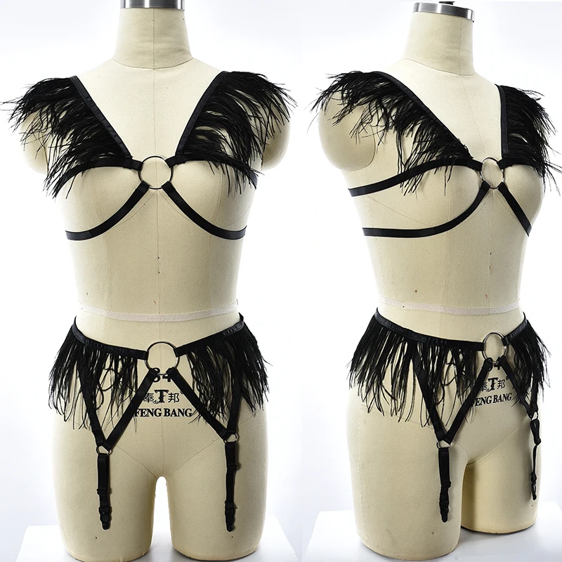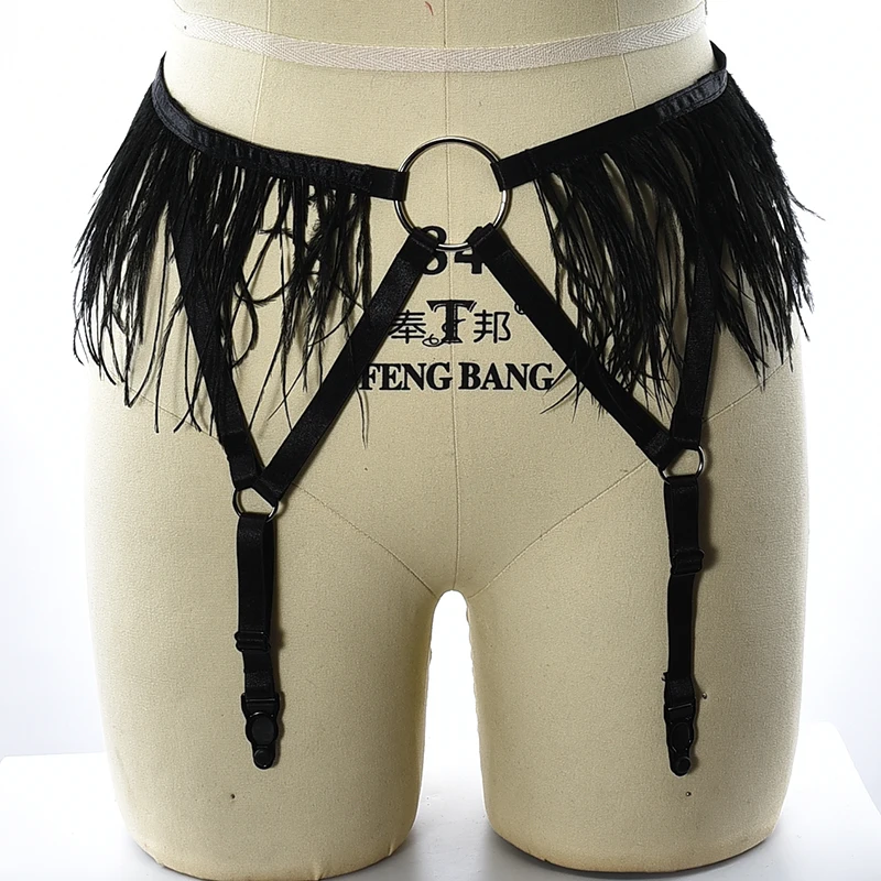 Женский черный Фетиш подвязка с перьями портупея для тела БДСМ бонд...