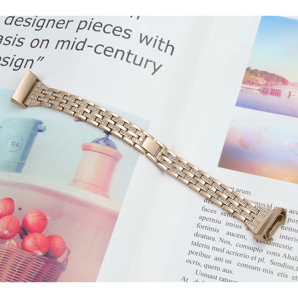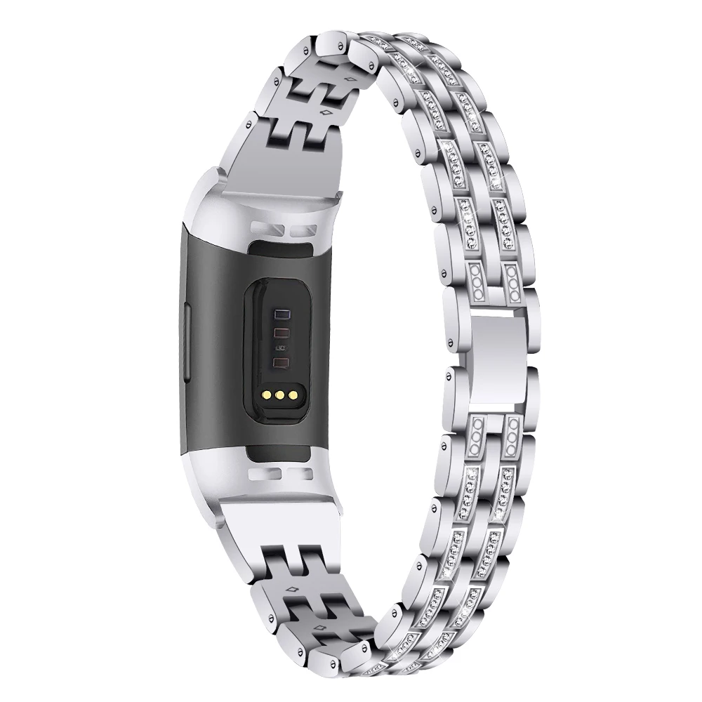 Женский ремешок со стразами для Fitbit Charge 3 4 из нержавеющей ст...