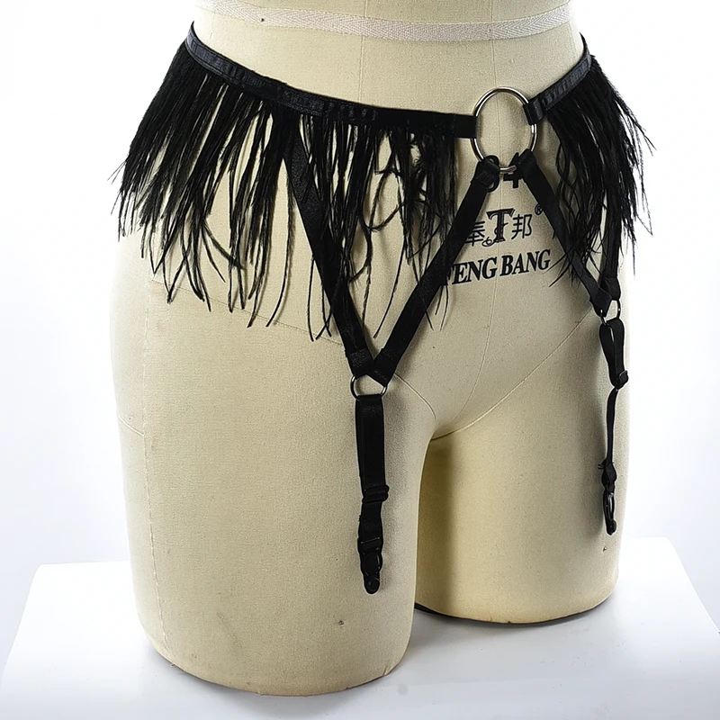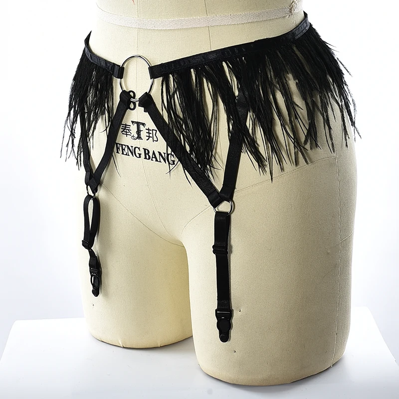 Женский черный Фетиш подвязка с перьями портупея для тела БДСМ бонд...