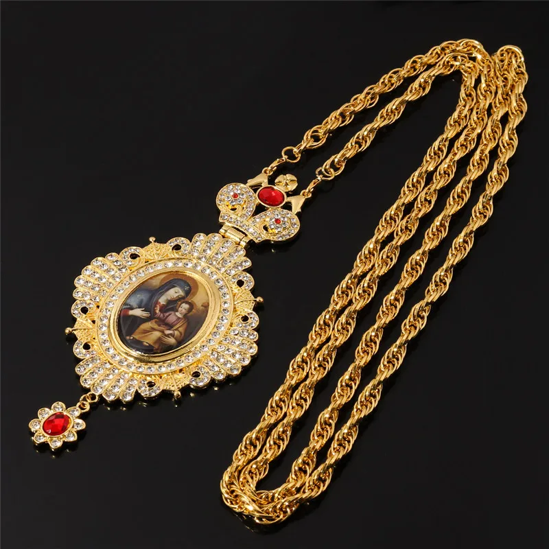 Высокое качество ручной крест Мэри икона религиозное ремесло ожерелье для женщин мужчин греческие ортодоксальные золотые цвета Религиозные ювелирные изделия
