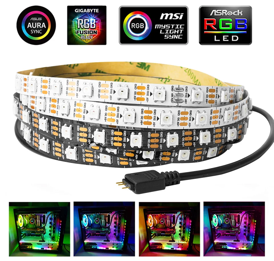 Модифицируемая светильник ная лента WS2812B для ПК MSI, 1 м, 60 светодиодов, ASUS Aura SYNC AORUS RGB2.0, 3-контактный разъем на материнской плате, 5 В
