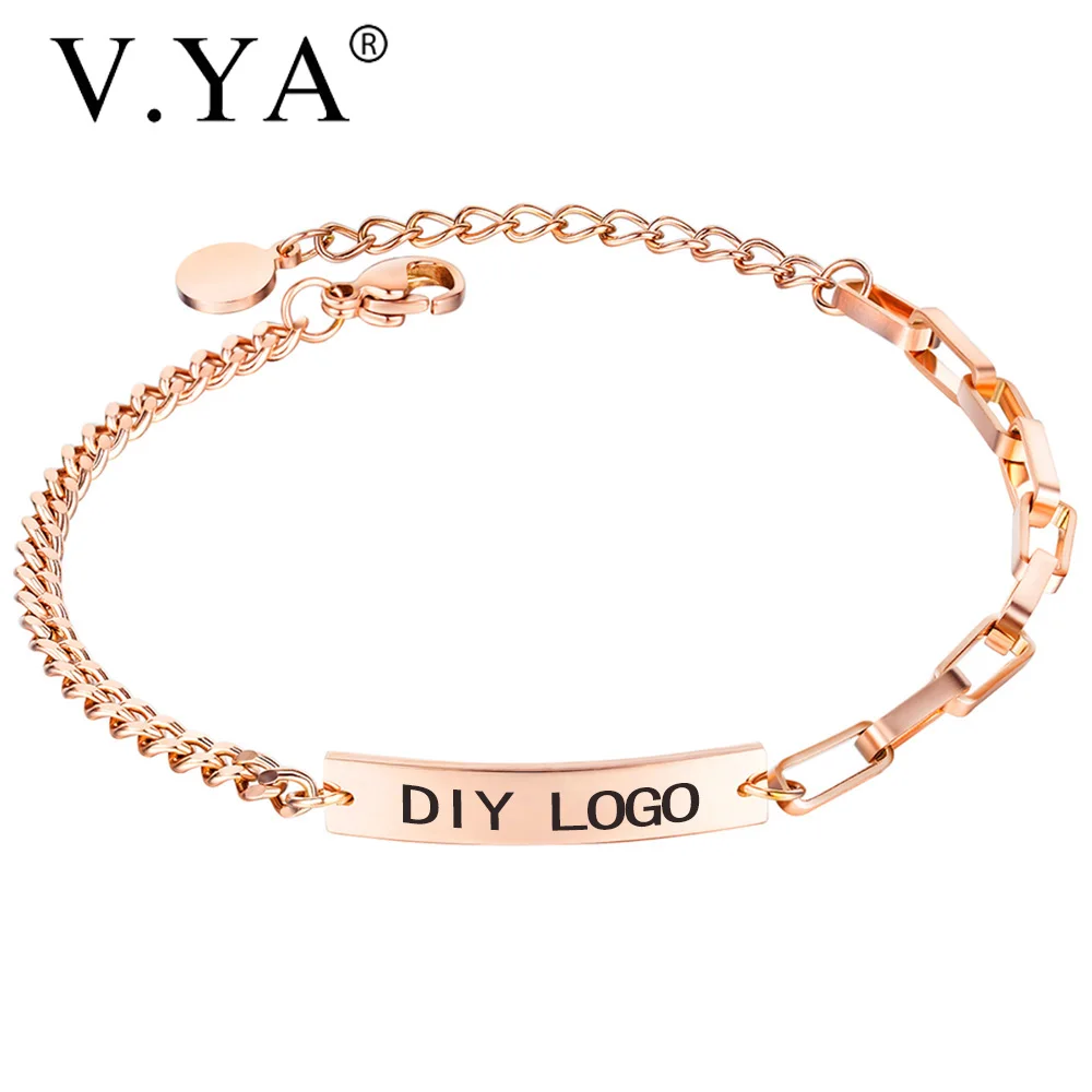 V.YA простой индивидуальный браслет для женщин и мужчин темпераментный стиль браслет из нержавеющей стали модный браслет с гравировкой для друзей подарок