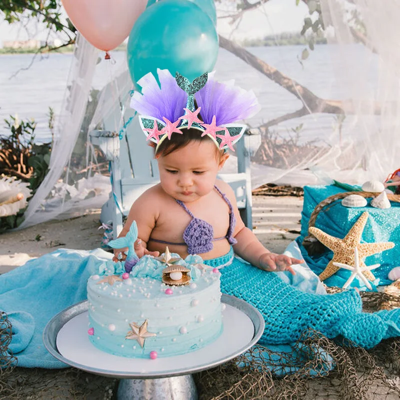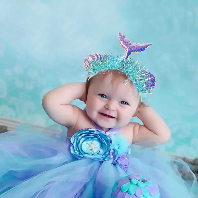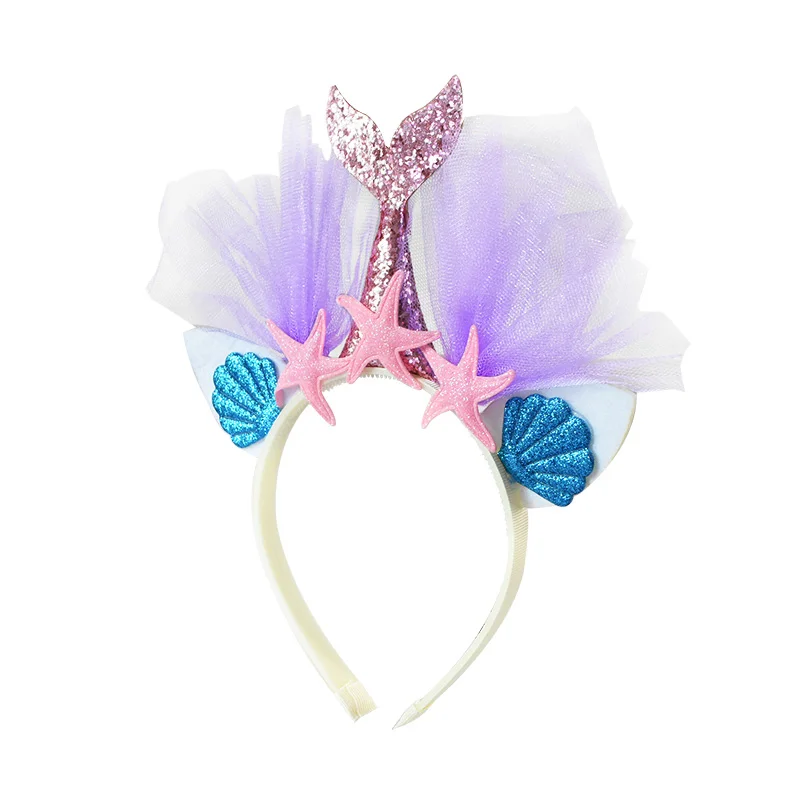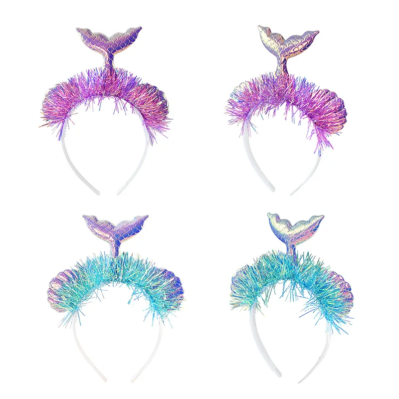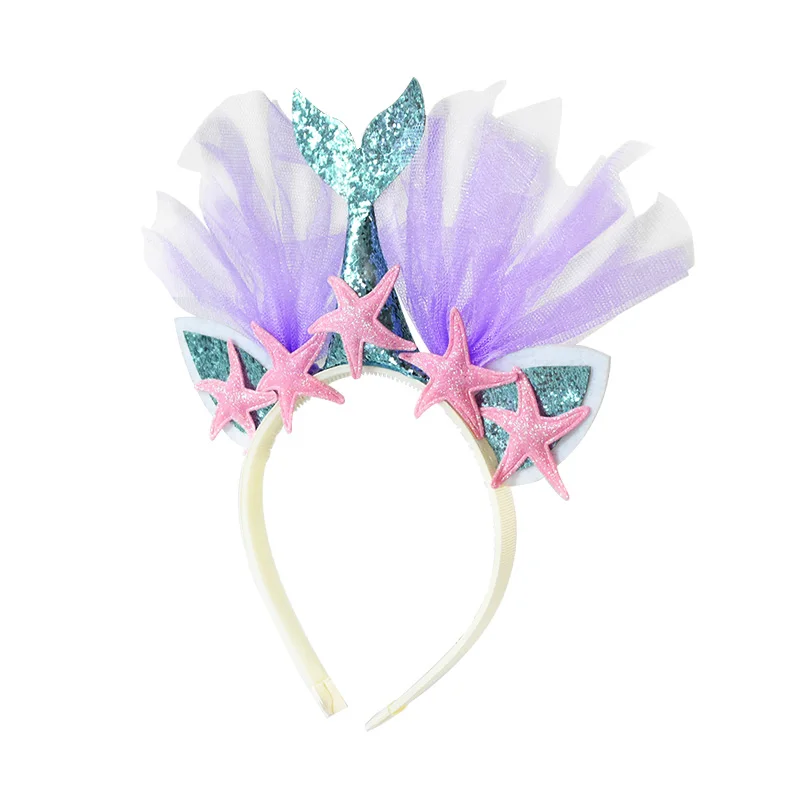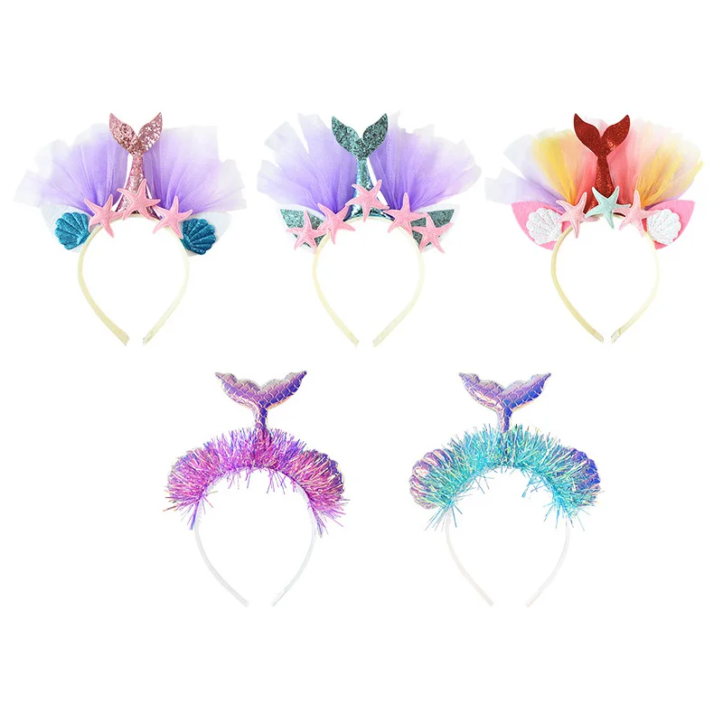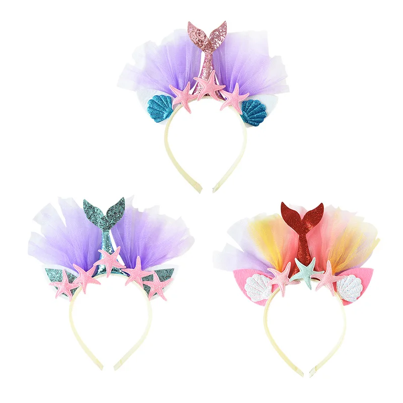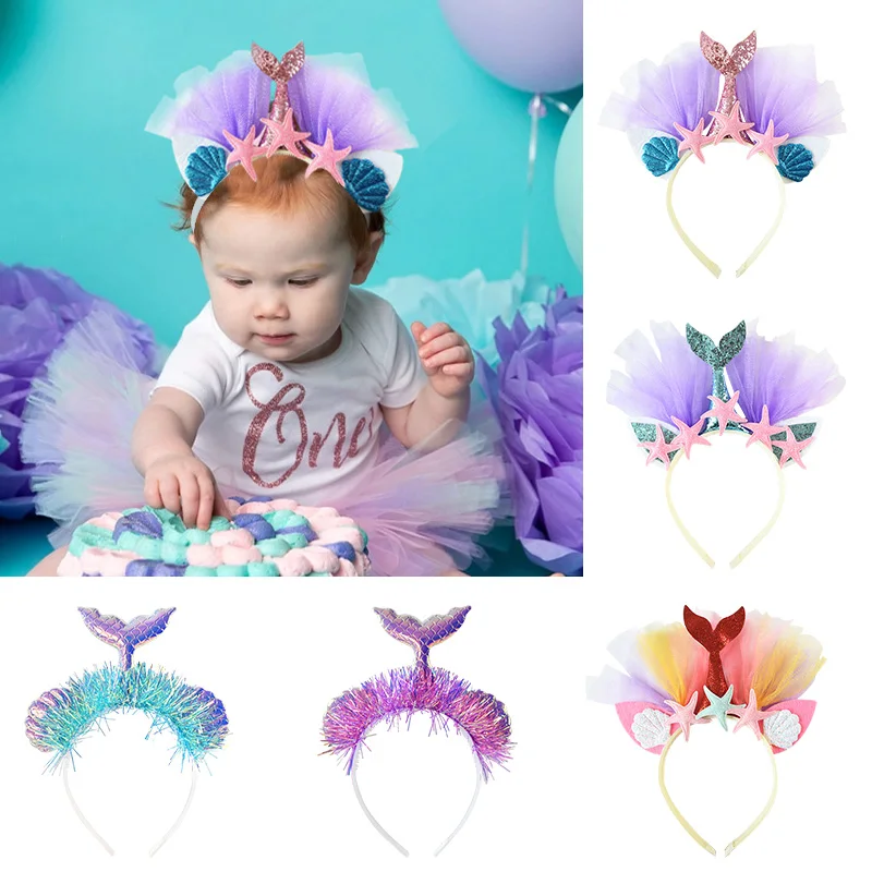 1 шт., блестящий ободок для волос с хвостом русалки, морская звезда, модная повязка на голову для девочек, товары для дня рождения, вечеринки, украшение для волос в виде русалки